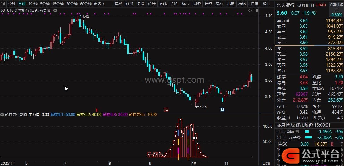 彩柱寻牛指标包含副图与选股 属底部类指标 信号出现代表进入底部区域 预示反转可能 信号不漂移 指标源码 手机电脑通用