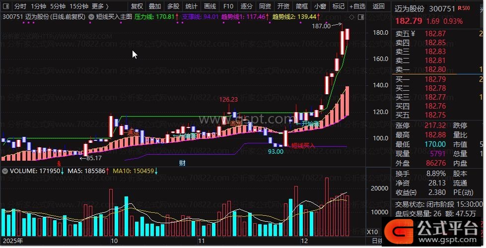 压力线:MA(REF(HHV(C,30),1),2),COLORGREEN;