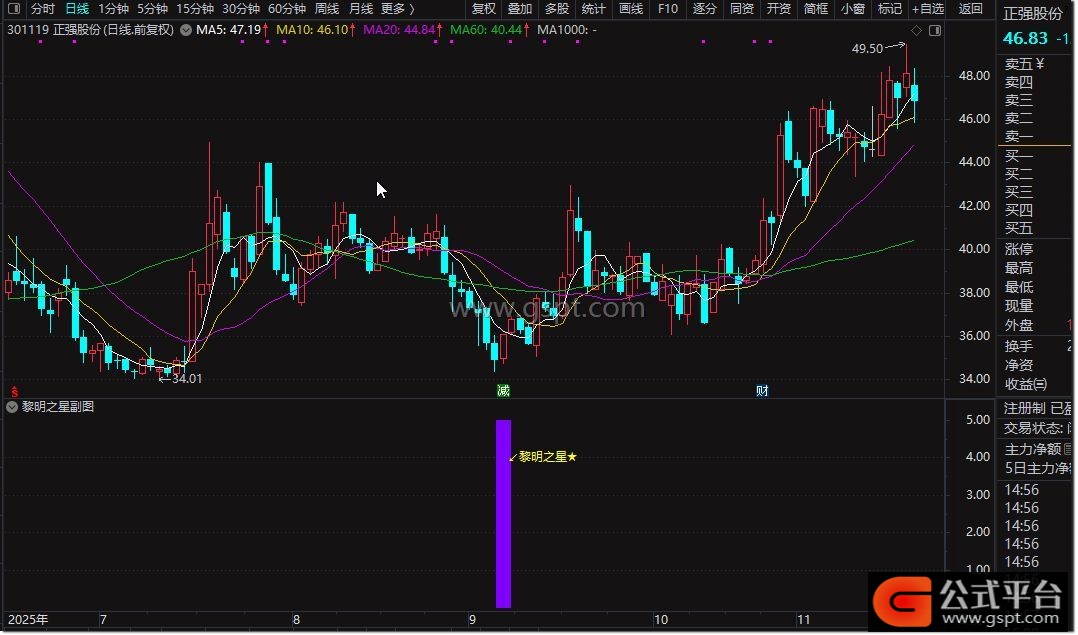 黎明之星:=gspt2 AND gspt3 AND gspt4 AND gspt5 AND gspt6 AND gspt7 AND gspt8 AND gspt9 AND XXMACD;