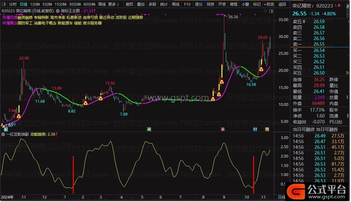 动能趋势:SMA(SMA(股价动能,3,1),3,1)/28.57,COLORYELLOW;