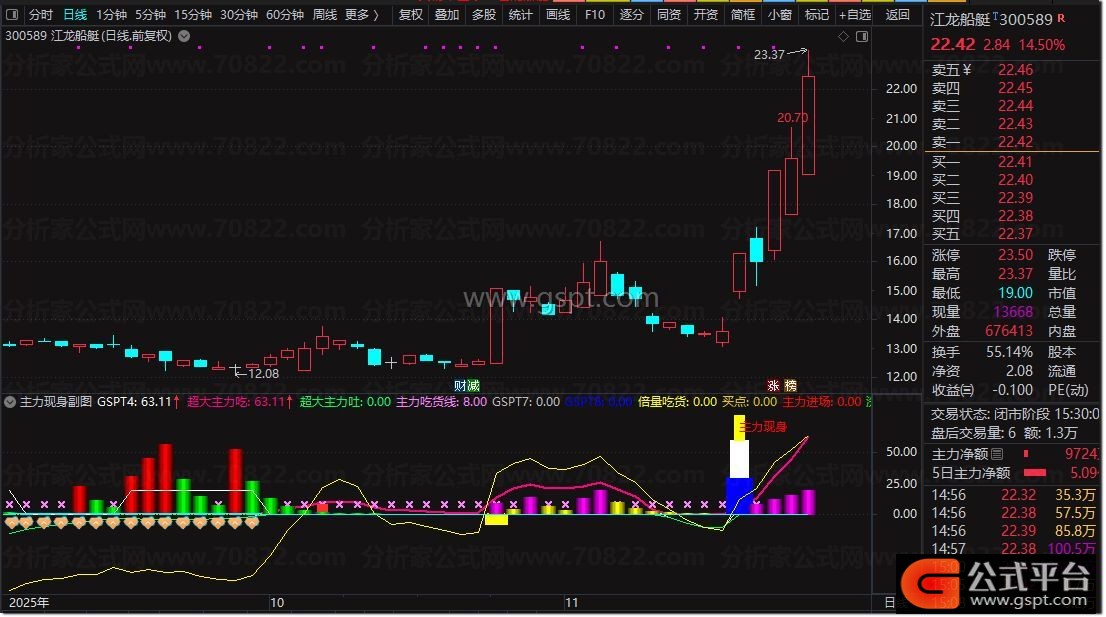 主力进场:IF(gspt_5>REF(gspt_5,1),gspt_5,0),COLORRED,NODRAW;