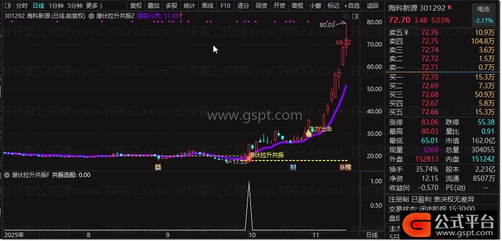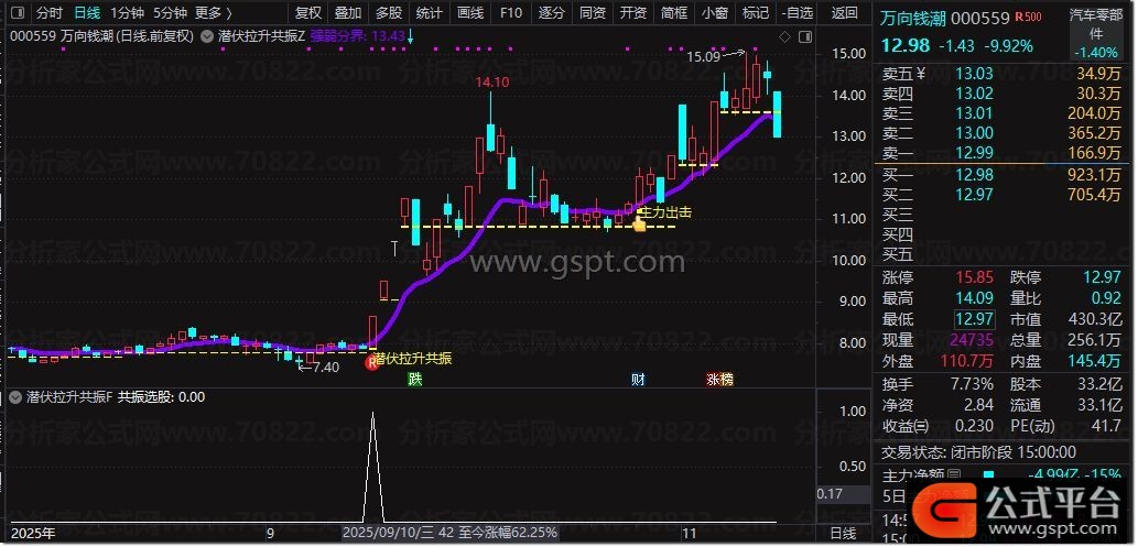 信号解读:选股结果即主力潜伏与强势拉升共振个股,优先选择股价在中长期均线上方且所属板块为当下热点的个股,介入成功率更高。