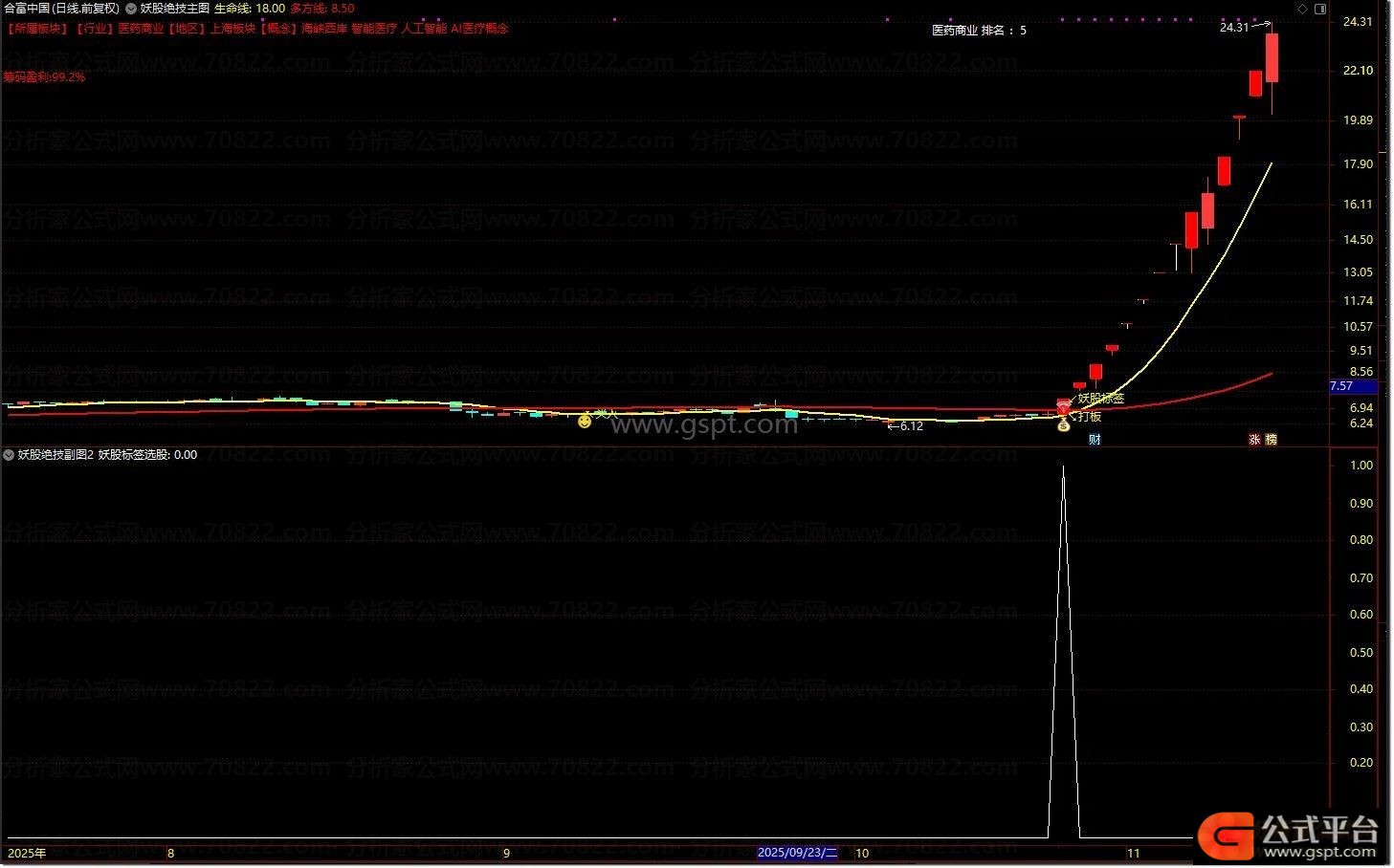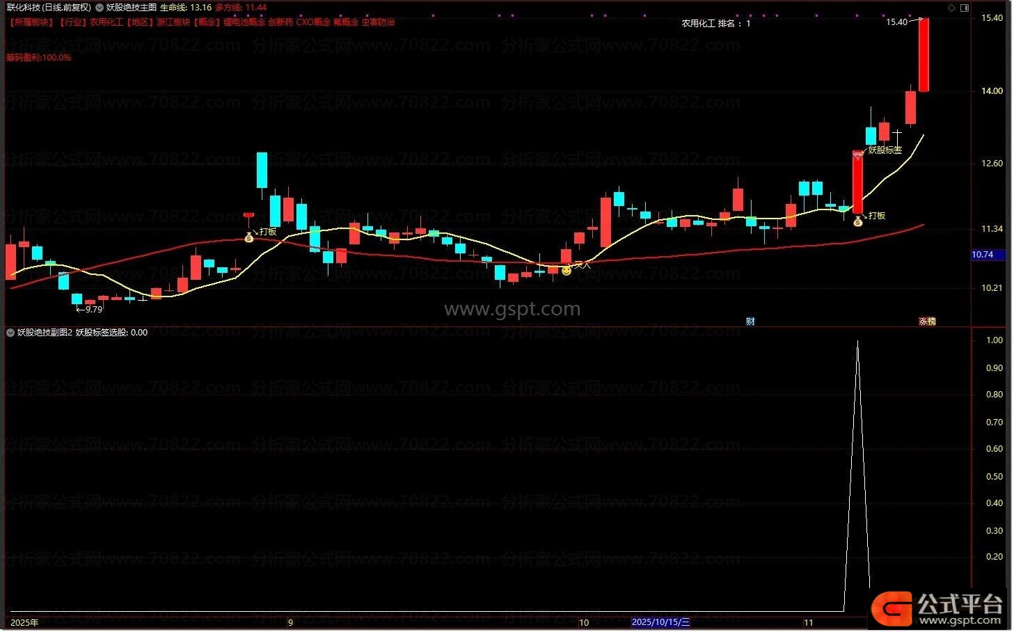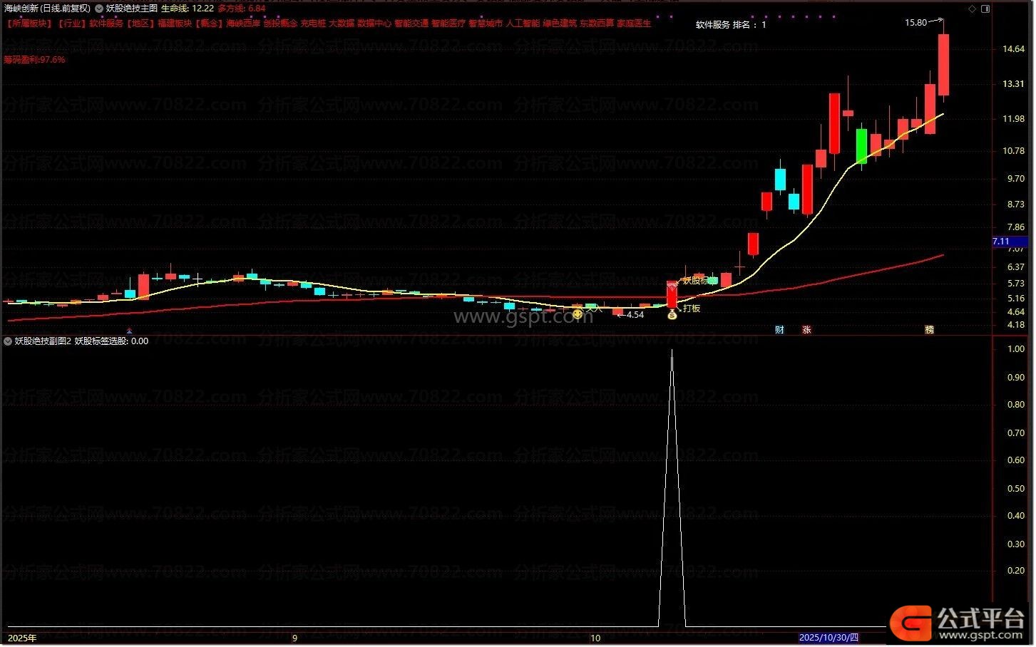 主图指标是一款专注于妖股挖掘、趋势跟踪和买卖信号提示的综合技术指标,适用于通达信软件个股行情界面。核心逻辑围绕价格波动、量能变化、筹码结构、主力控盘和板块属性五大维度,通过多条件组合筛选潜在妖股,同时提供买入、卖出、打板及妖股标签等明确信号,辅助短线交易决策。