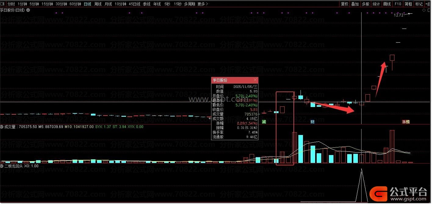 二板龙回头是指两连板后股价回调时的量化进场点。其核心逻辑在于回调期间量能累积首次放出倍量。