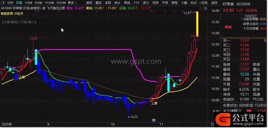- 💥 强势确认:红色粗线凸显短期强势,黄色涨停柱标记极致动能