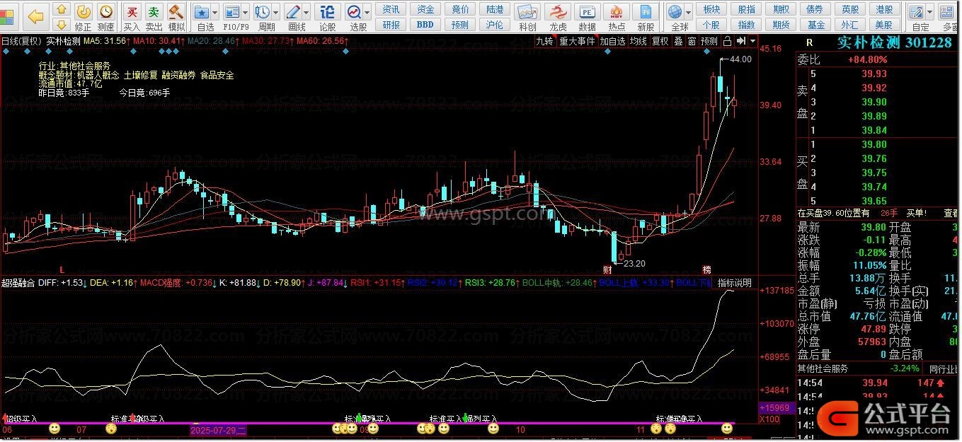 卖出信号2:=总分<30 AND CROSS(D,K) AND K>20,COLOR00FF00,LINETHICK3;