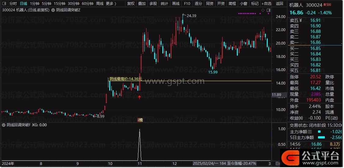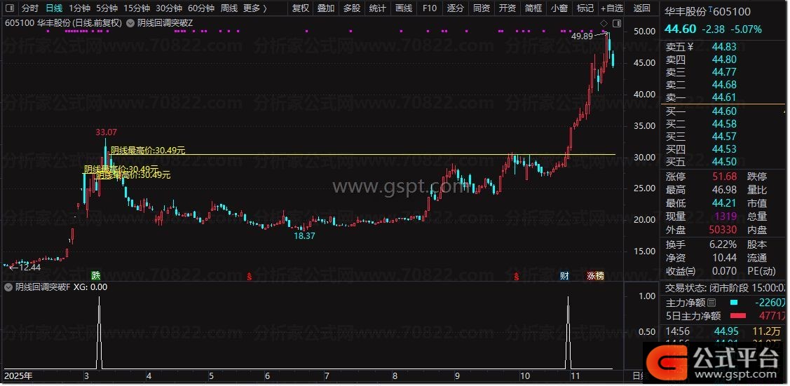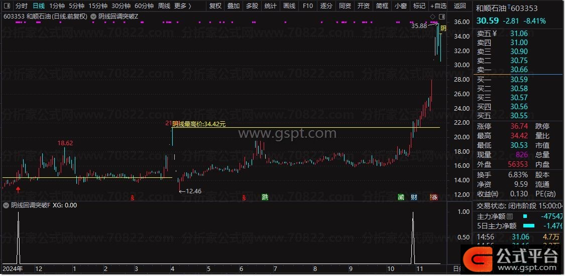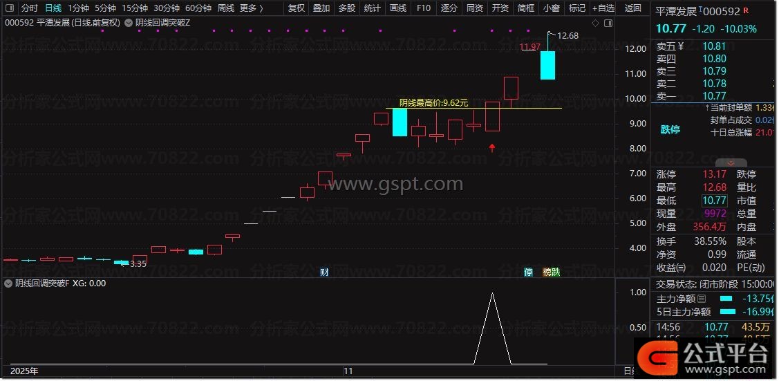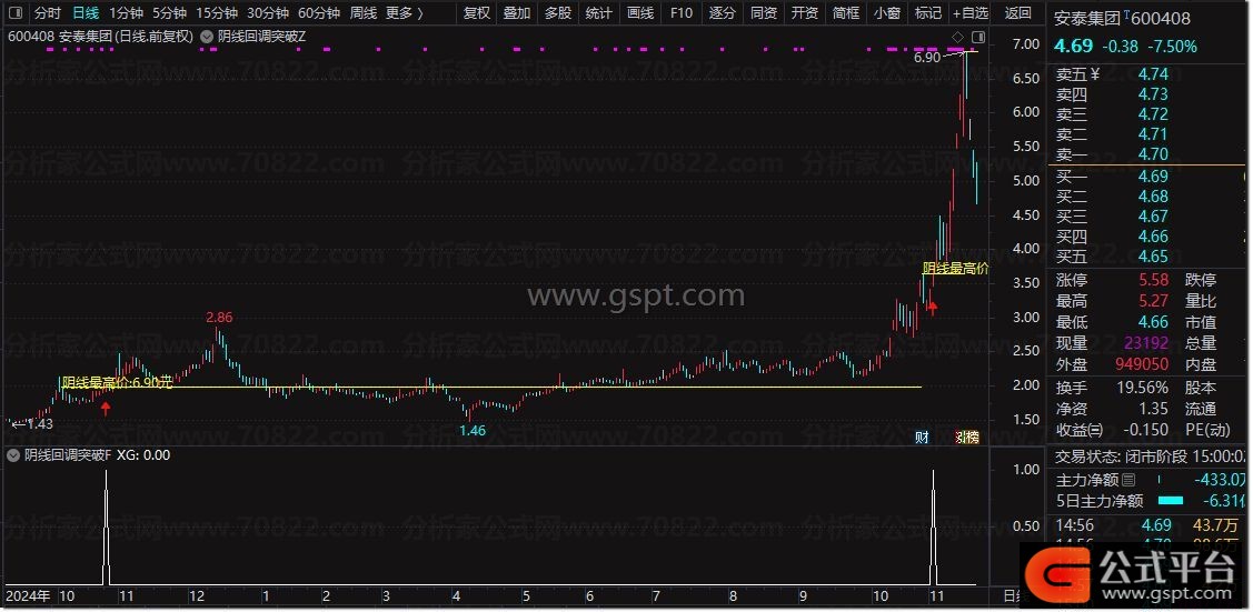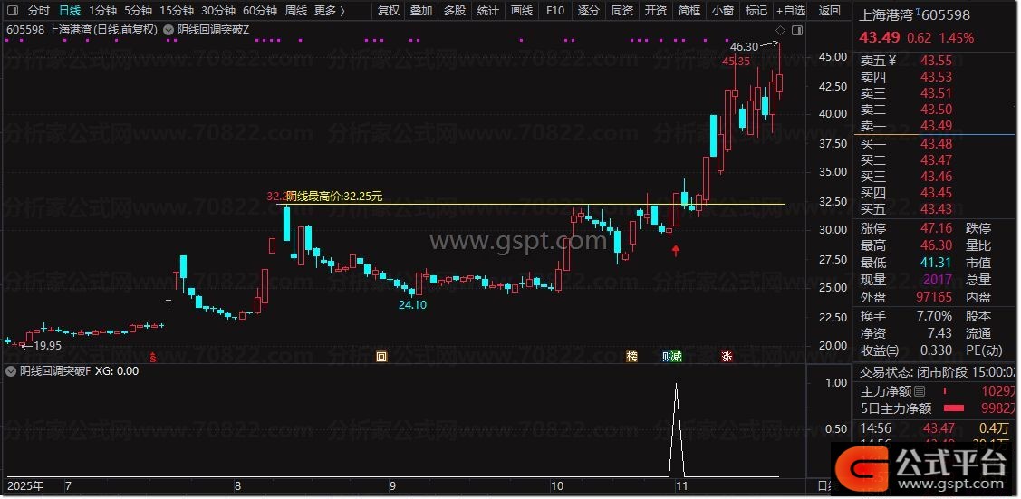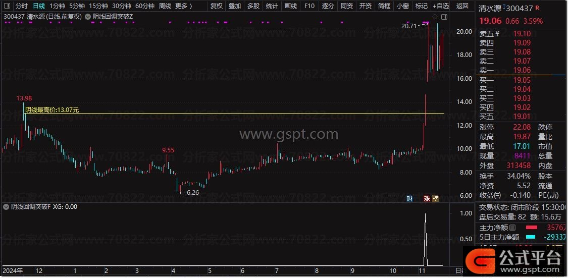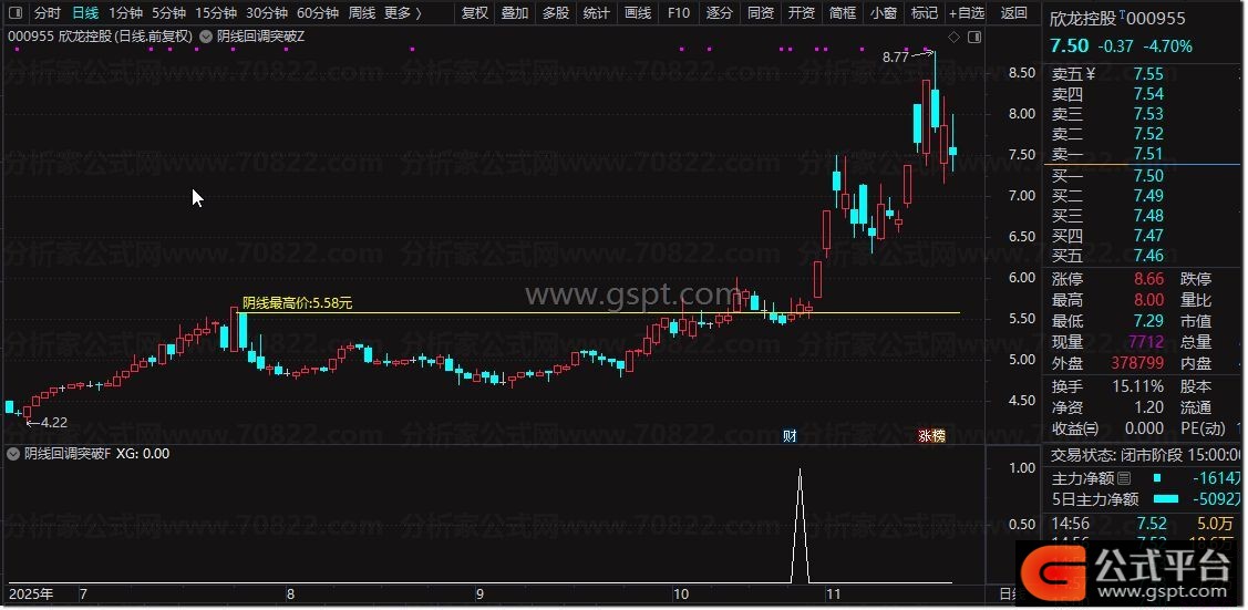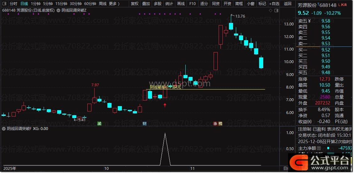 通达信『阴线回调突破』买入信号 股价回调后的首次突破识别