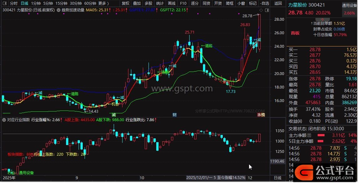 MR:=COUNT(CROSS(五日乖离率,0),3)>=1&&GSPTW>REF(GSPTW,1)&&MA05>REF(MA05,1)&&(C/REF(C,1)-1)*100>5&&REF(C,1)<MA30;