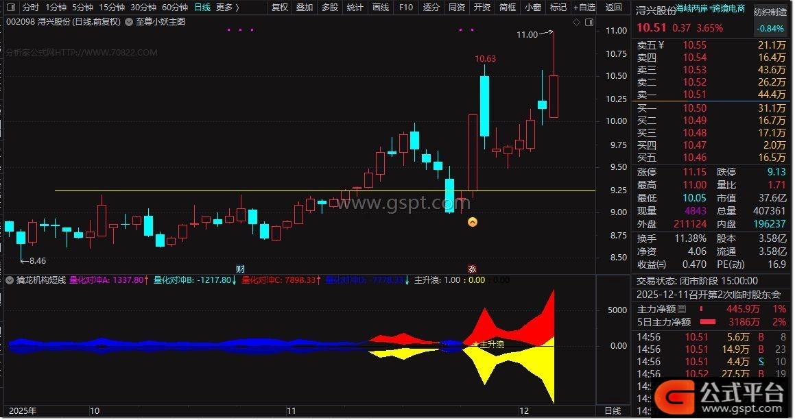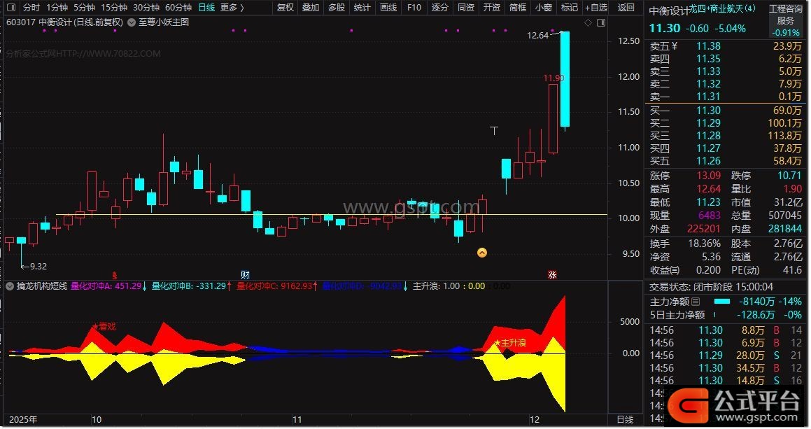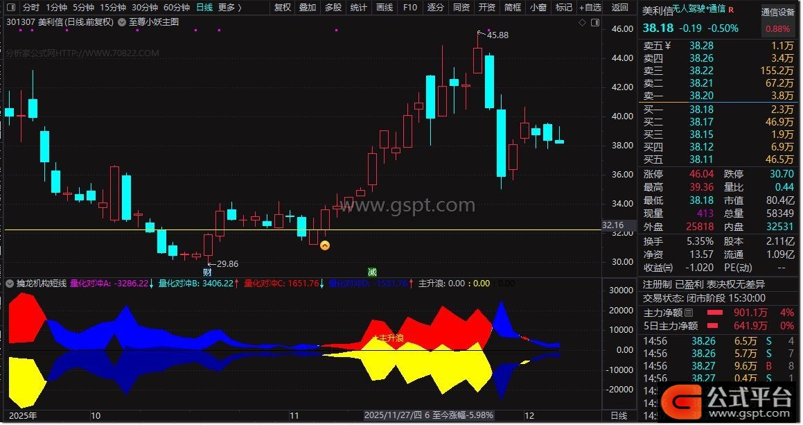 主升浪:量化对冲c>0&&量化对冲a>0&&量化对冲b< 0&&量化对冲d< 0;