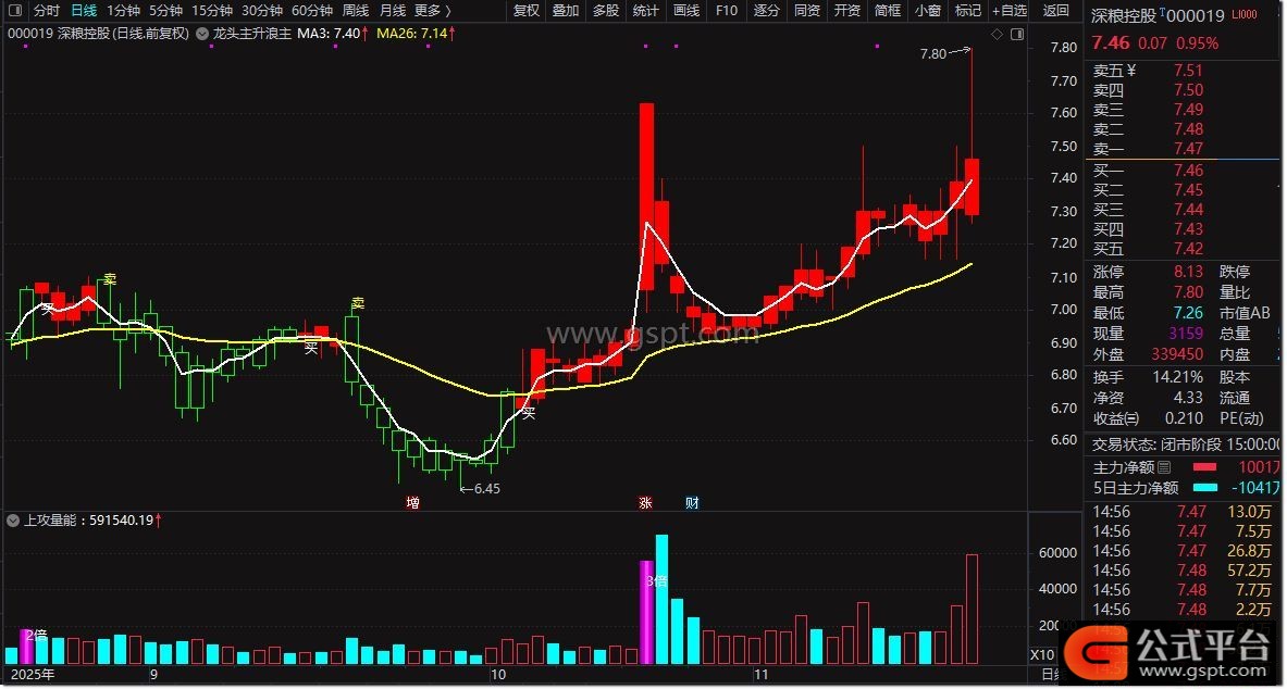 DRAWTEXT(gspt9,HIGH,'卖'),COLORYELLOW;