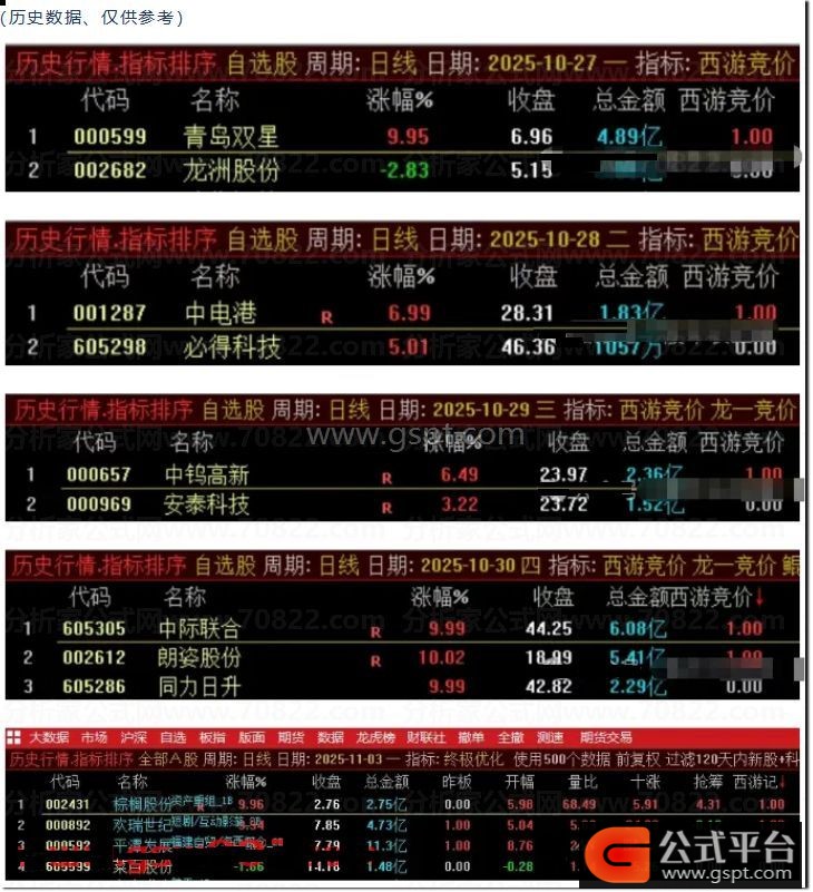 西游竞价早盘竞价排序选股指标 优质实用信号少而精 附源码