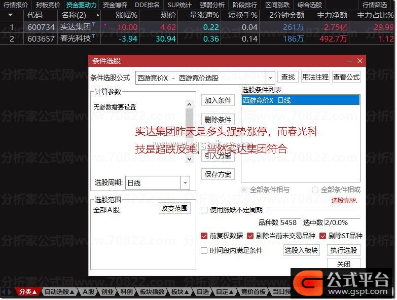 通达信『西游竞价』排序选股指标 金钻品质信号少而精 竞价选股指标