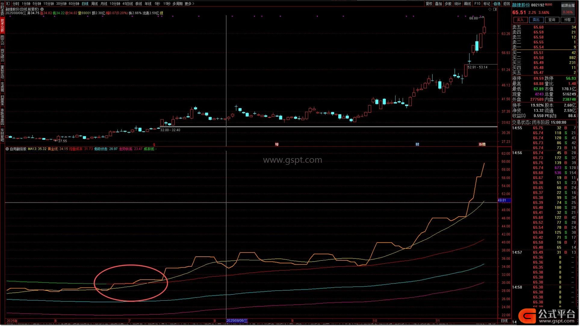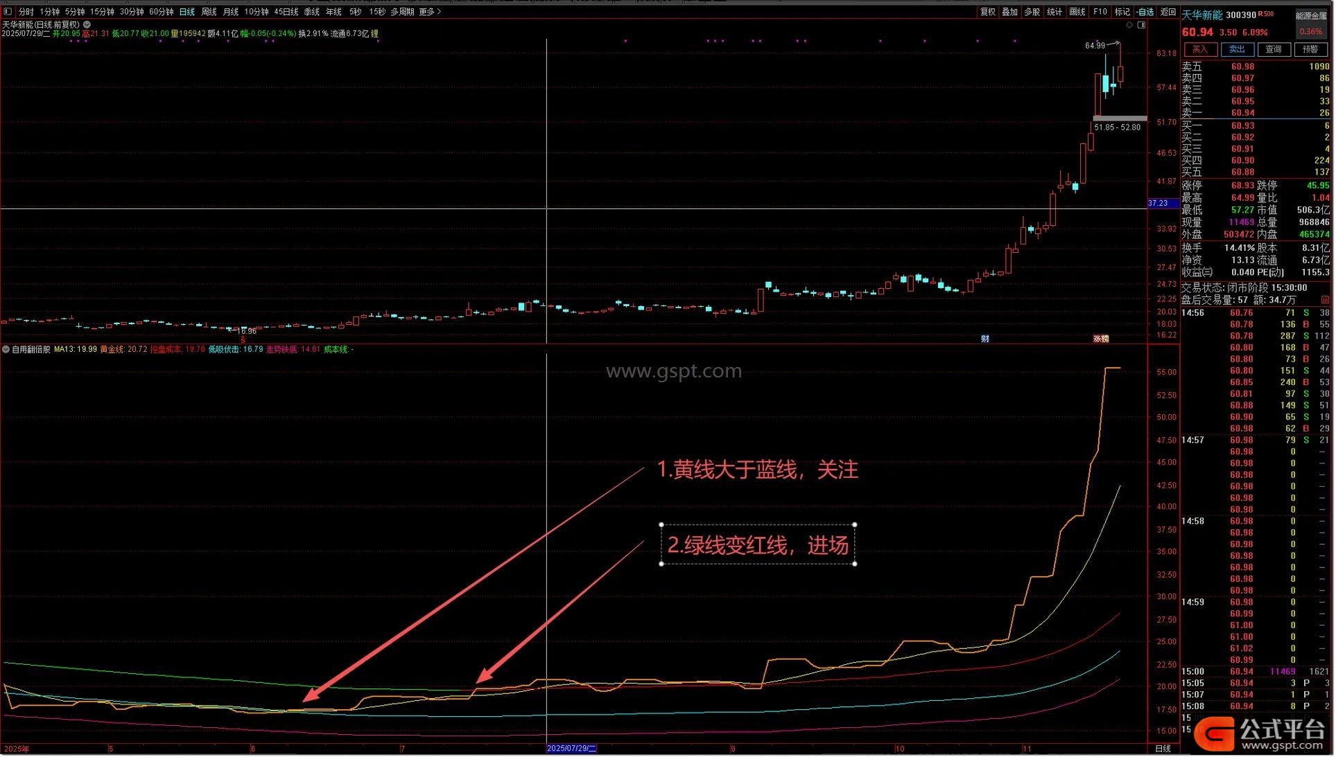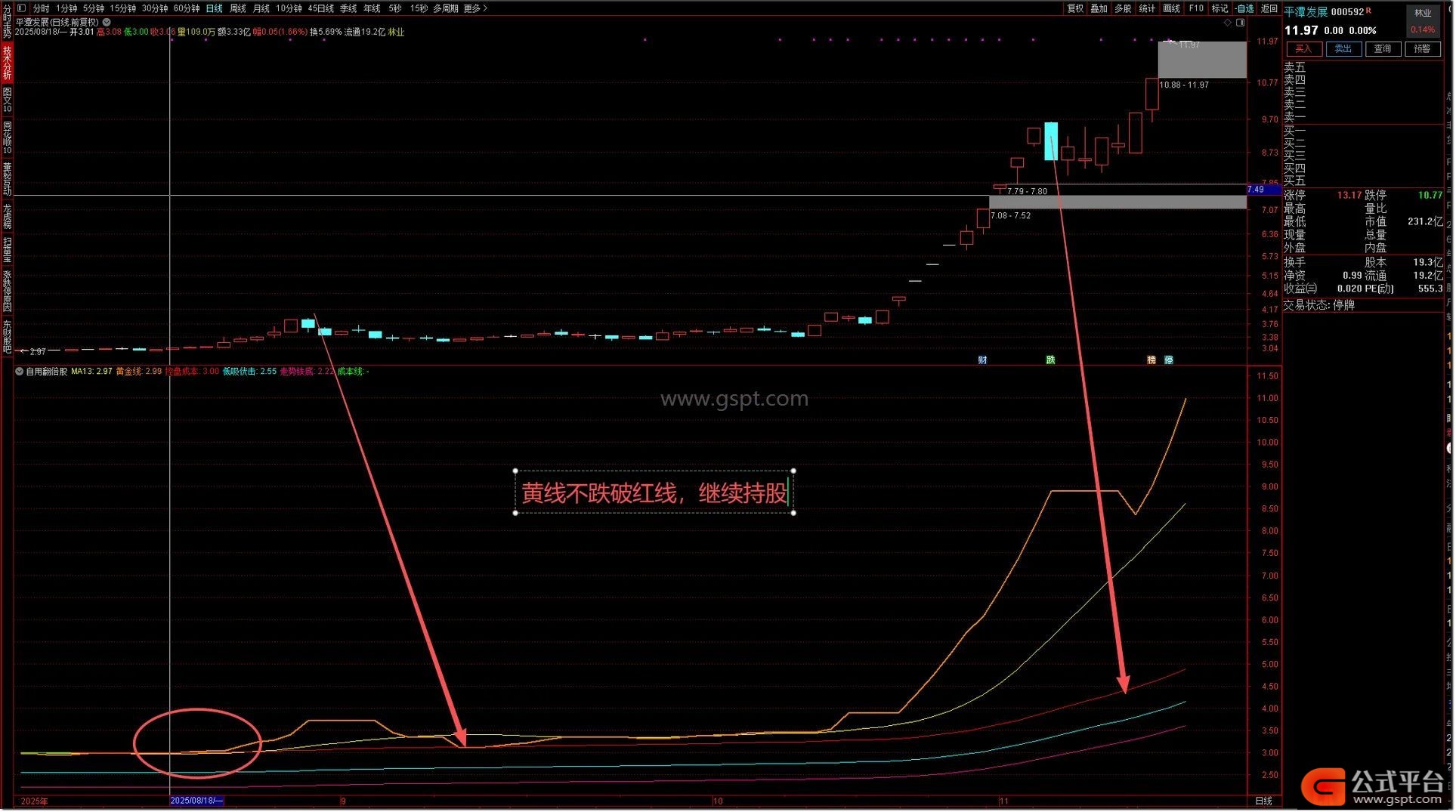 4. 趋势确认:黄金线与MA13同步向上时,主升浪概率大增