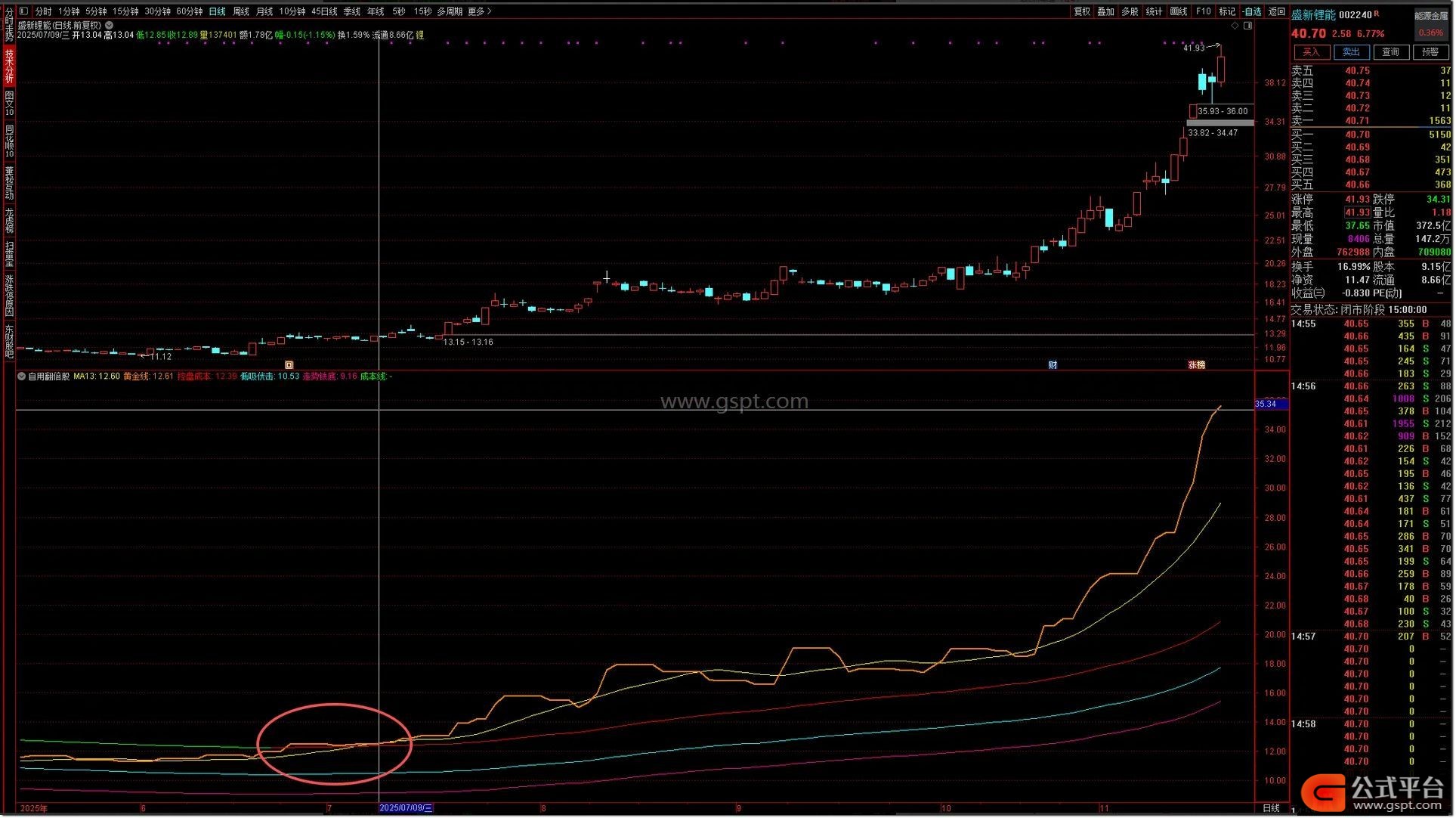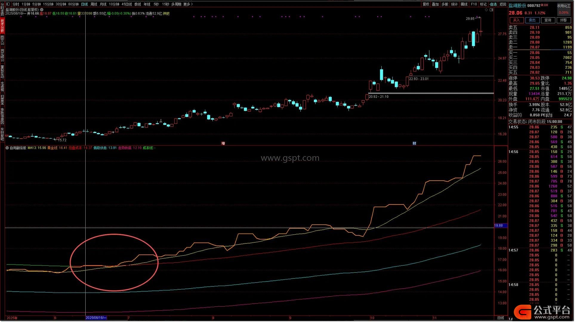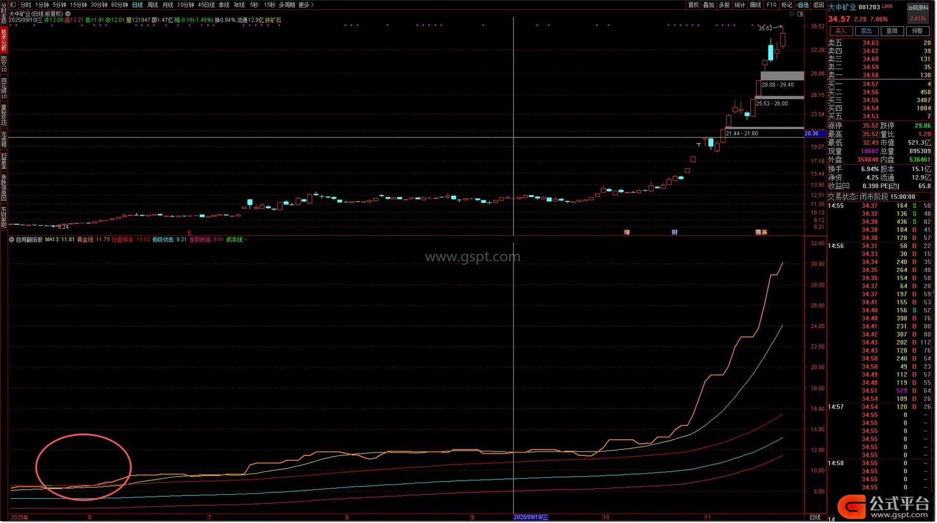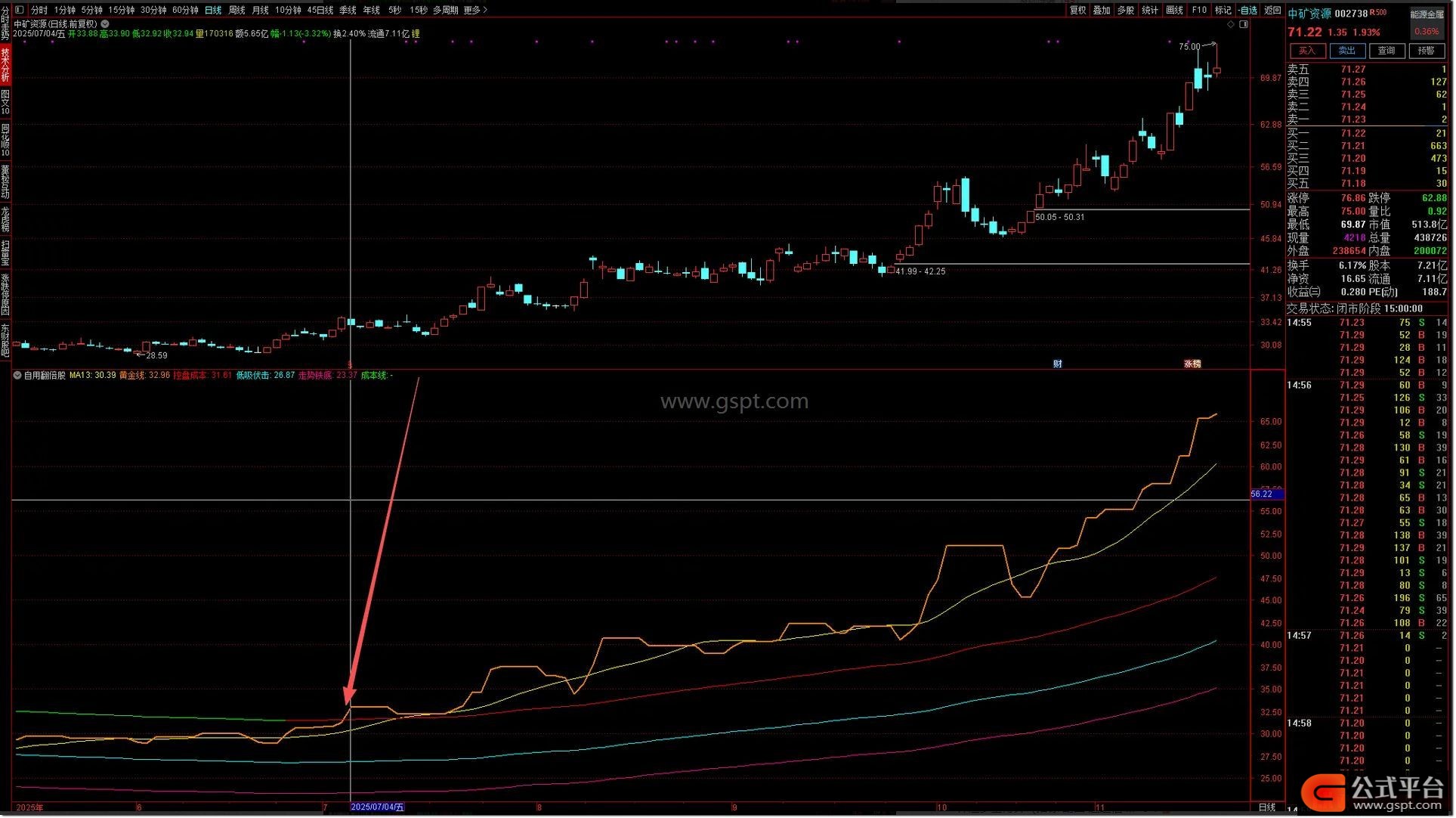 4. 趋势确认:黄金线与MA13同步向上时,主升浪概率大增