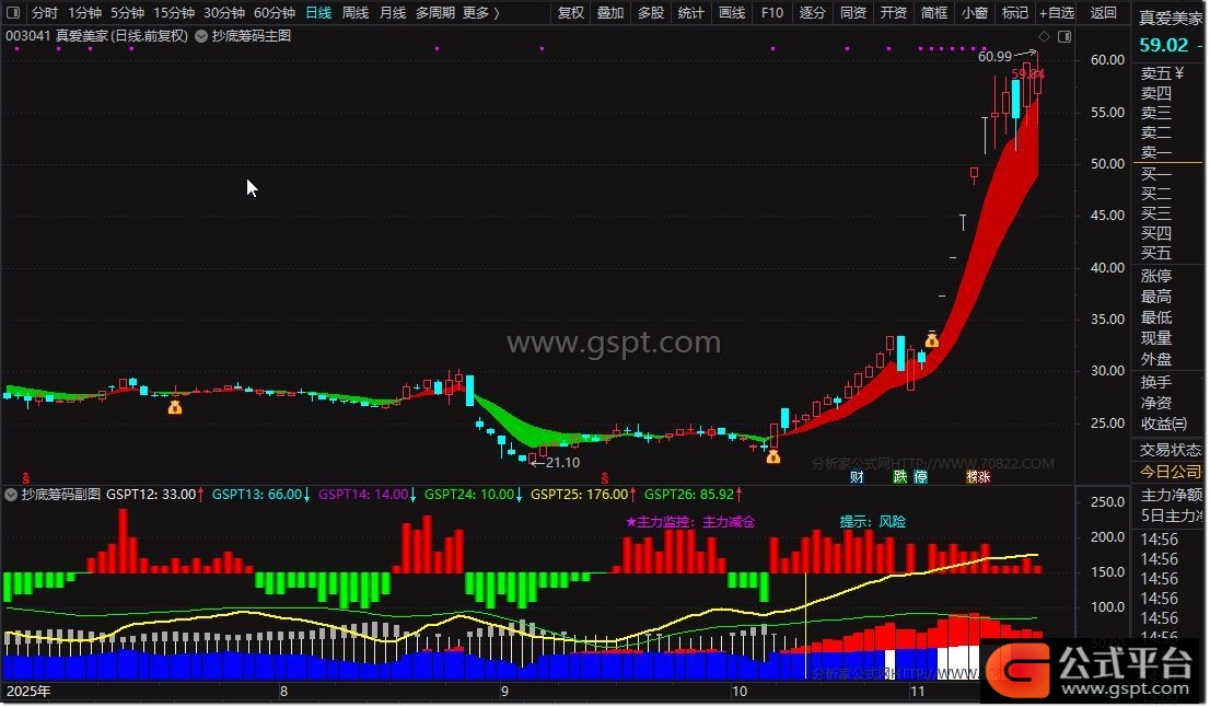 2. 机会风险提示:通过筹码强度(gspt20)划分机会区、风险区、追涨区等