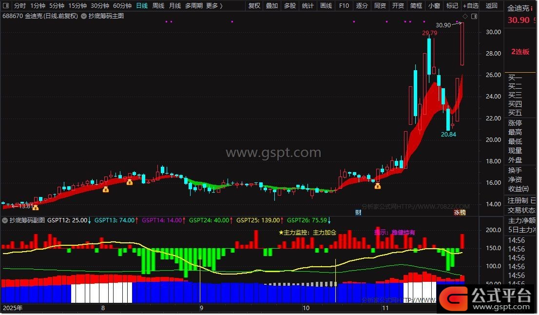 > 三维一体监控体系,将筹码分布、主力动向、价格强度完美融合,通过色彩鲜明的柱状图和精准的文字提示,让复杂的技术分析变得直观易懂,特别适合捕捉中长期底部机会!