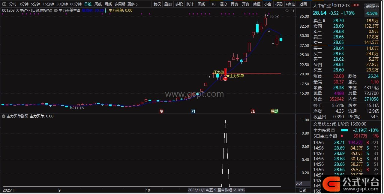 3. 信号出现时需满足:股价突破压力位1%以上,且距机构买单日涨幅小于20%