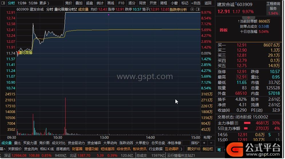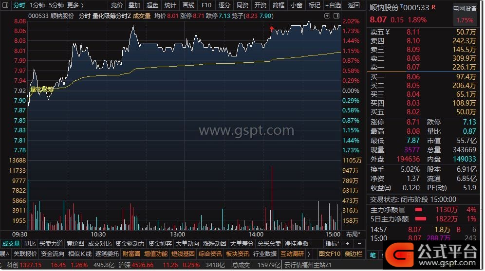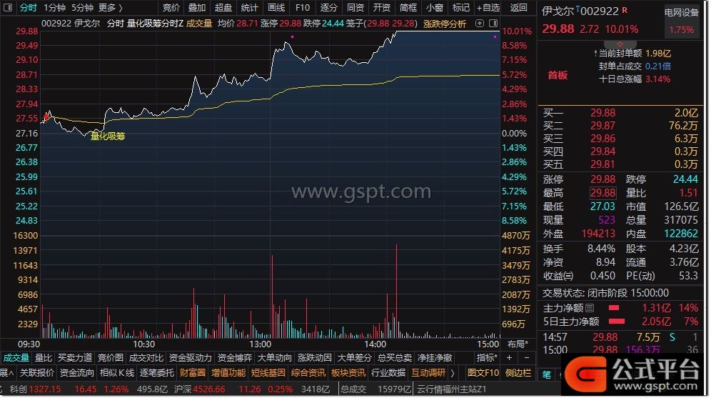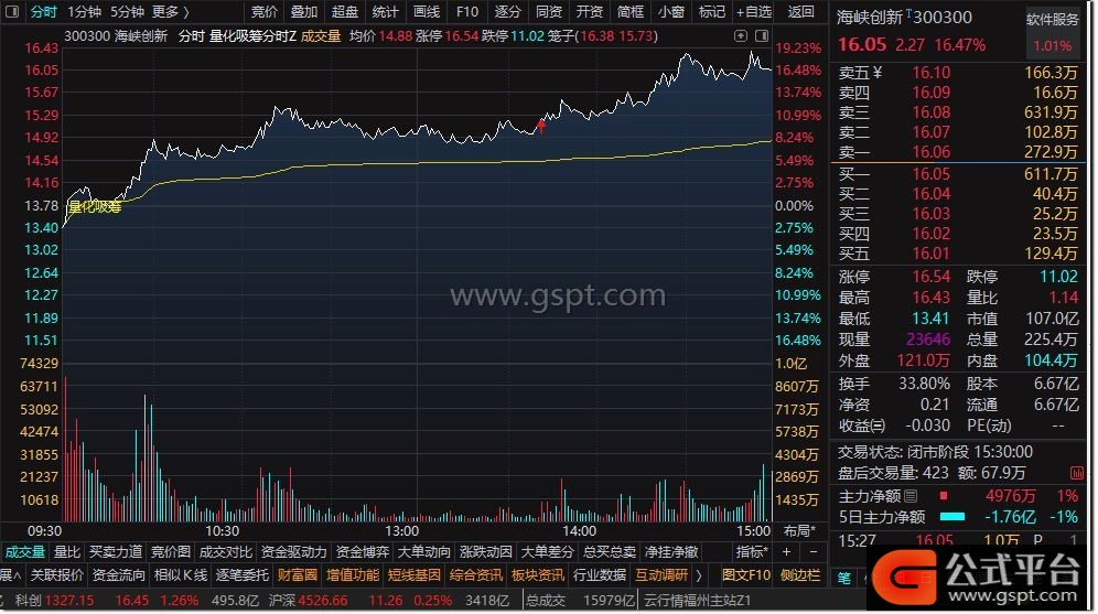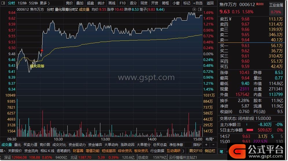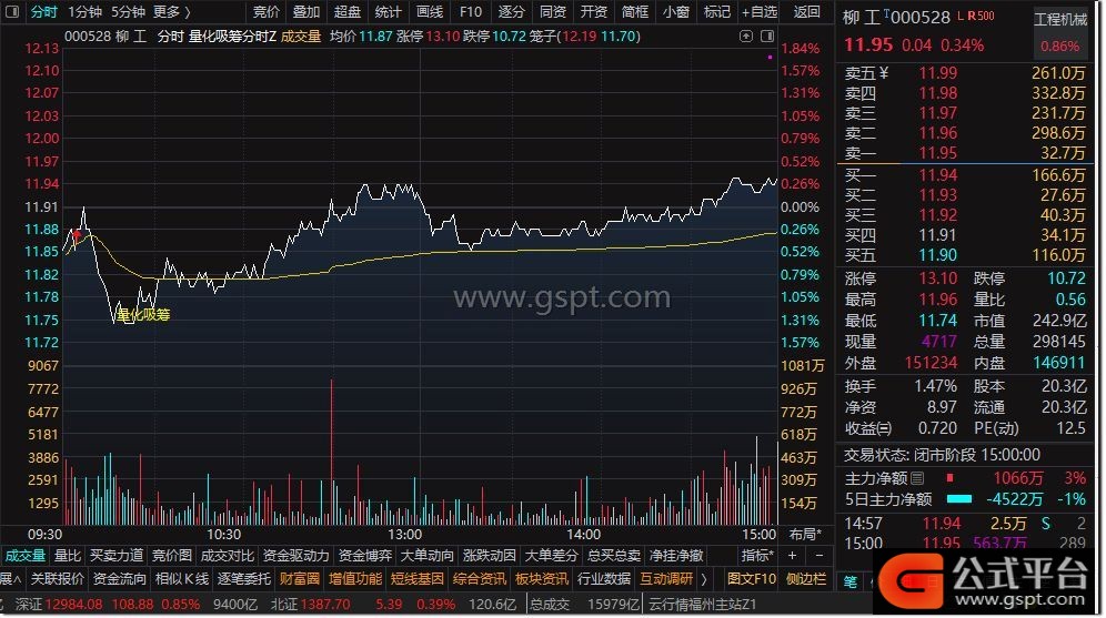 『量化吸筹分时』主图,筛选盘中量化吸筹游资合力高效启动周期突破强势买入机会