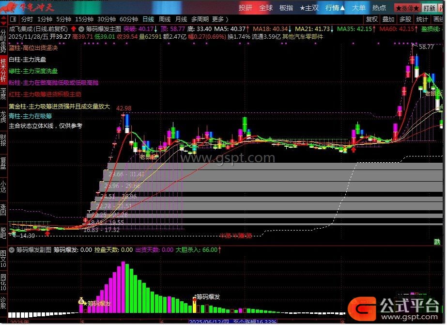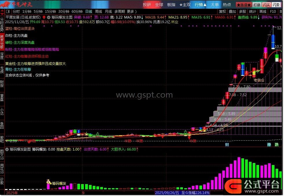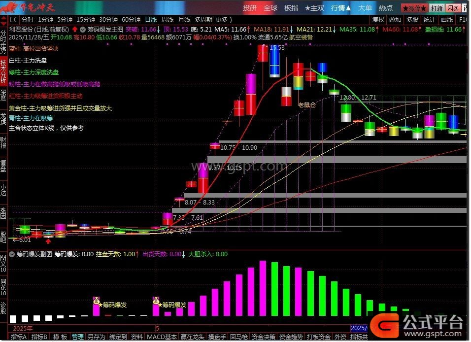 4. 风险预警:绿色柱体出现提示主力出货,粉色区域代表高度控盘需警惕高位风险