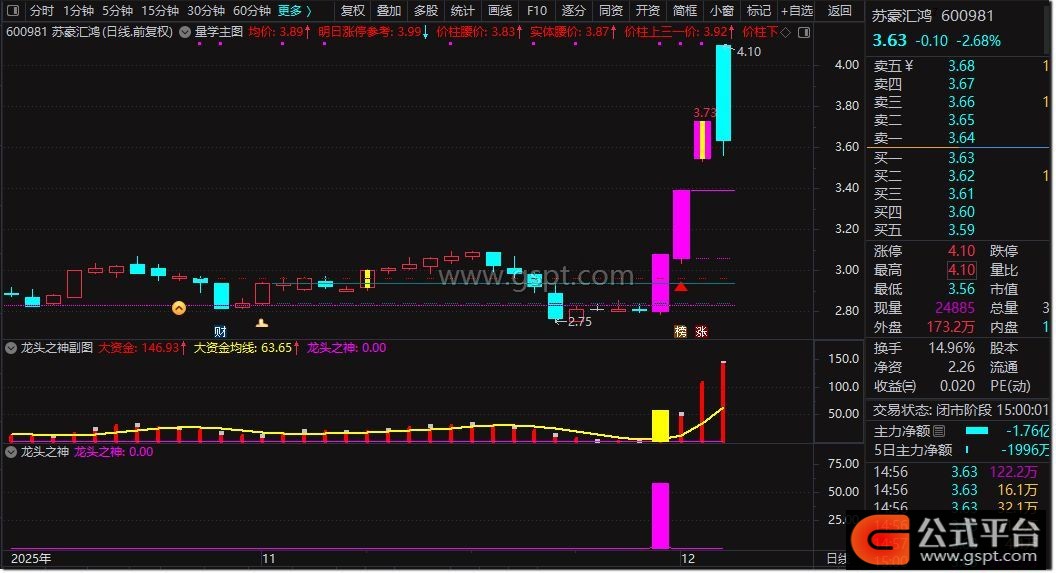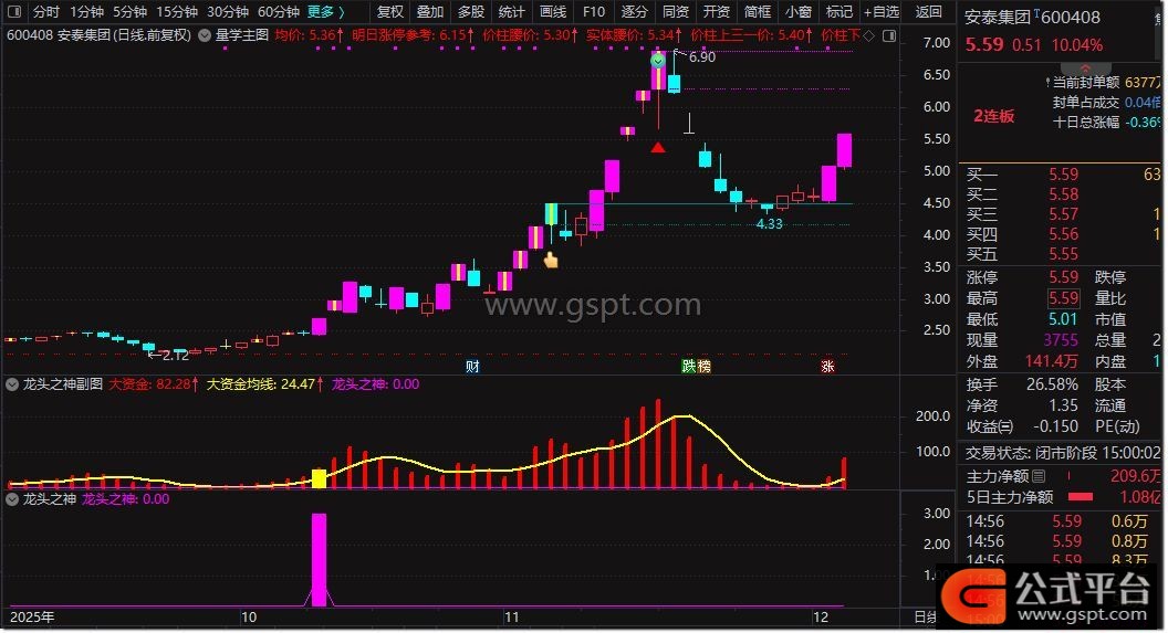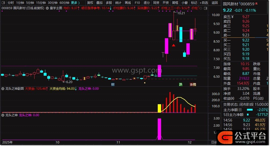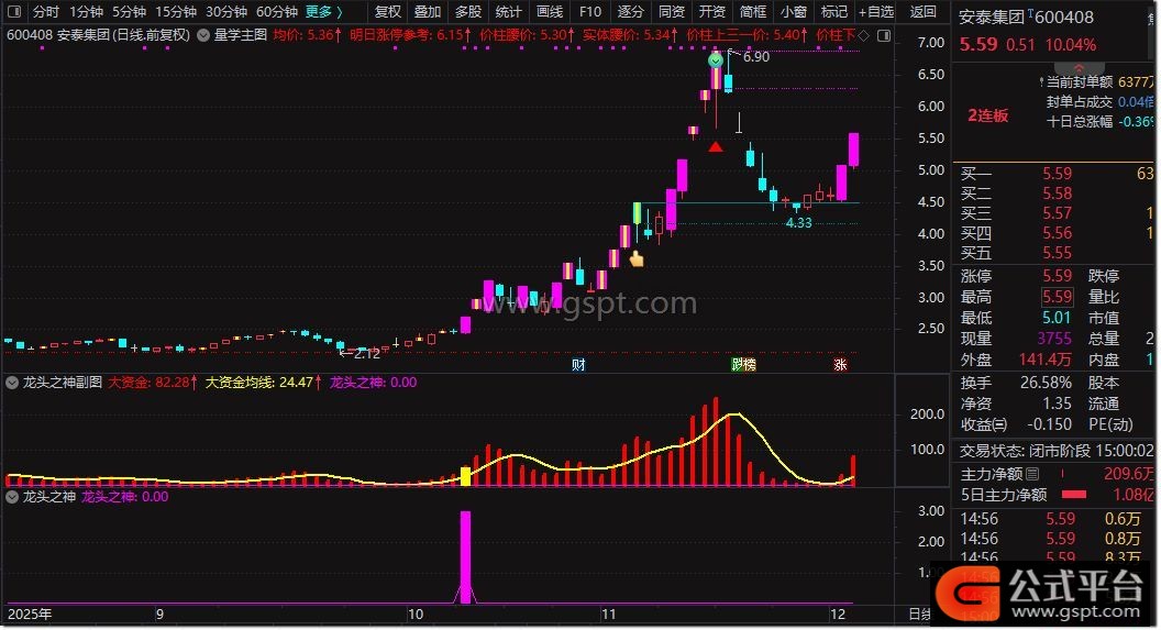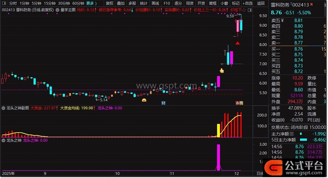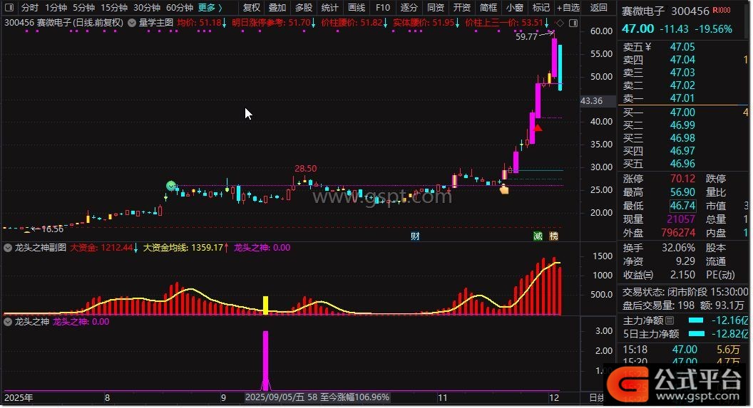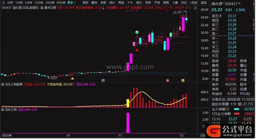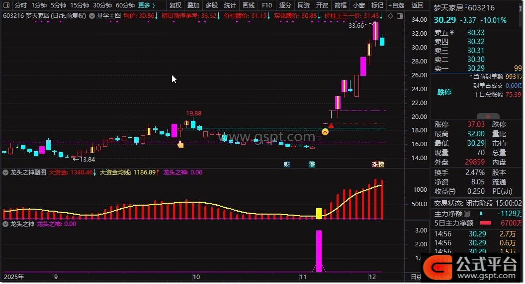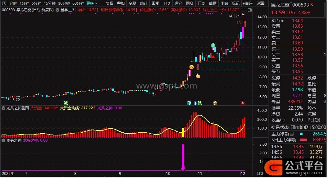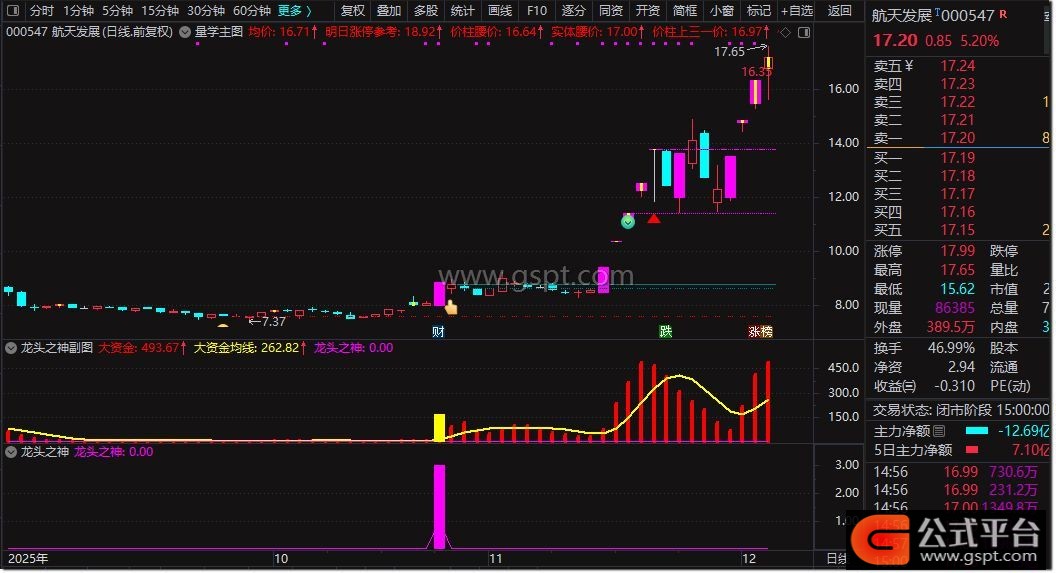 『龙头之神』捕捉强势股启动信号,主副图+选股指标