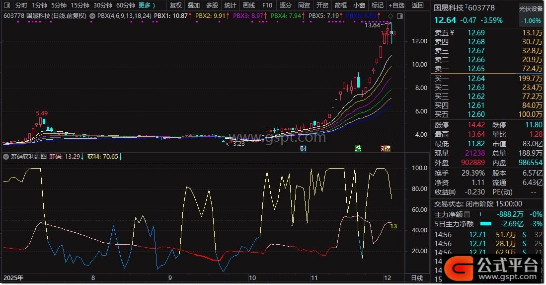筹码集中度数值越小,筹码越集中。颜色代表集中程度:
