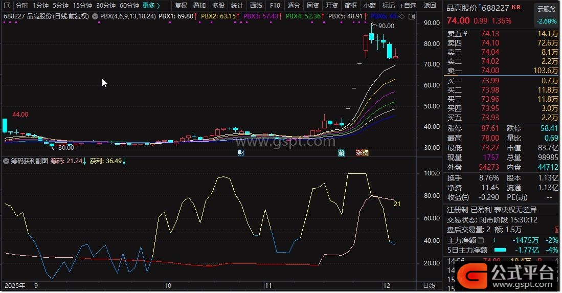 1、红色加粗(筹码线小于5):筹码异常集中,股价启动可能有大涨幅,重点关注,等待介入时机。
