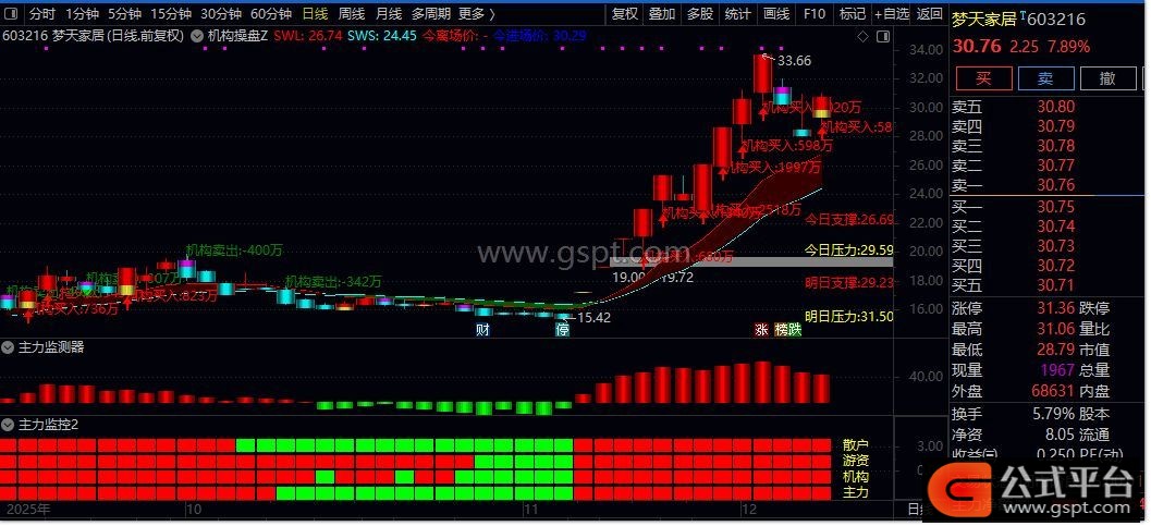 买卖信号:出现 “机构买入” 箭头可参考建仓,“机构卖出” 箭头需警惕离场;