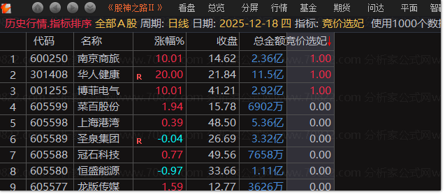 通达信『竞价选妃』排序副图+选股指标,捕捉3票涨停!