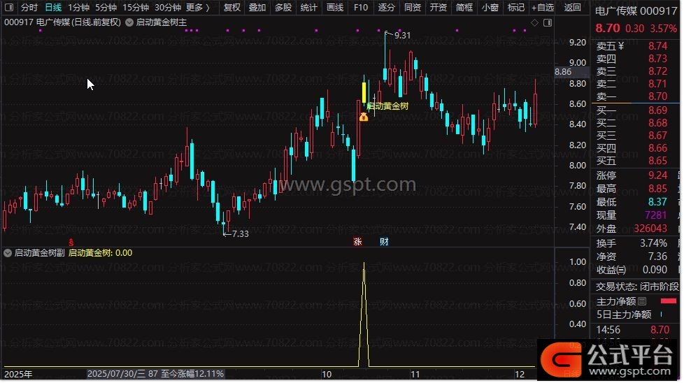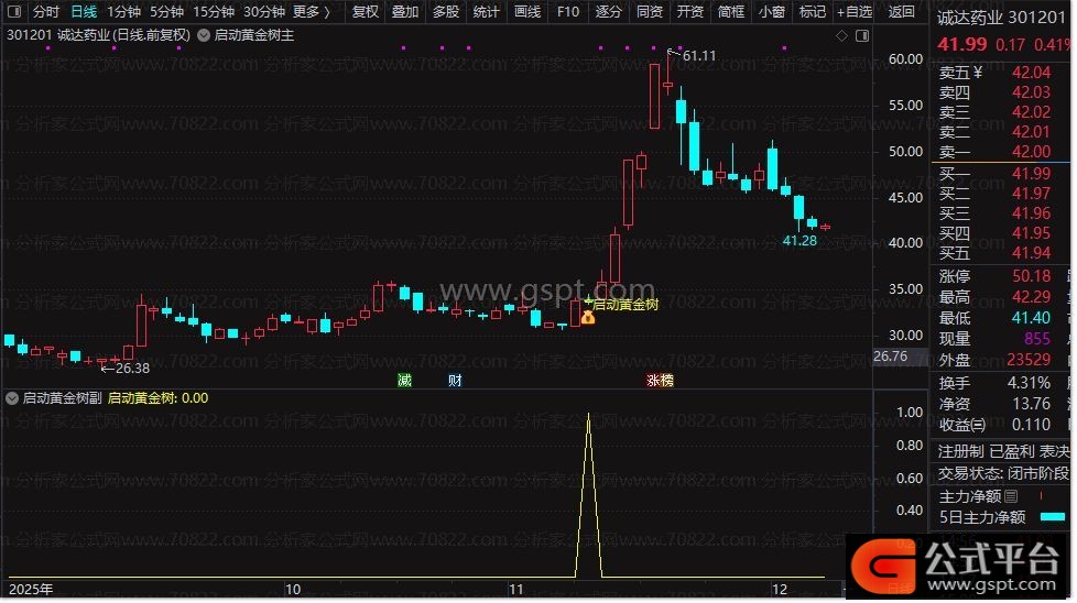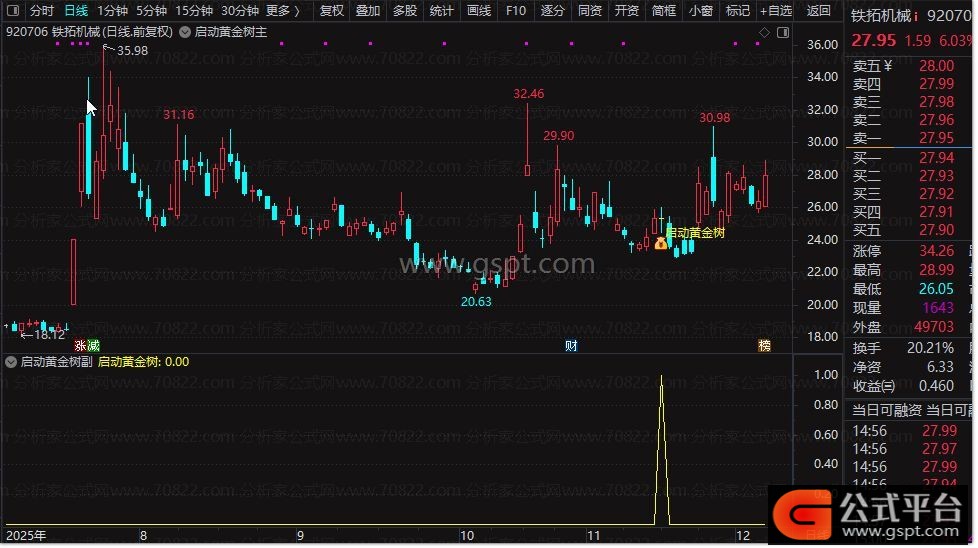 通达信『启动黄金树』拉升蓄力启动信号 手机电脑通用指标