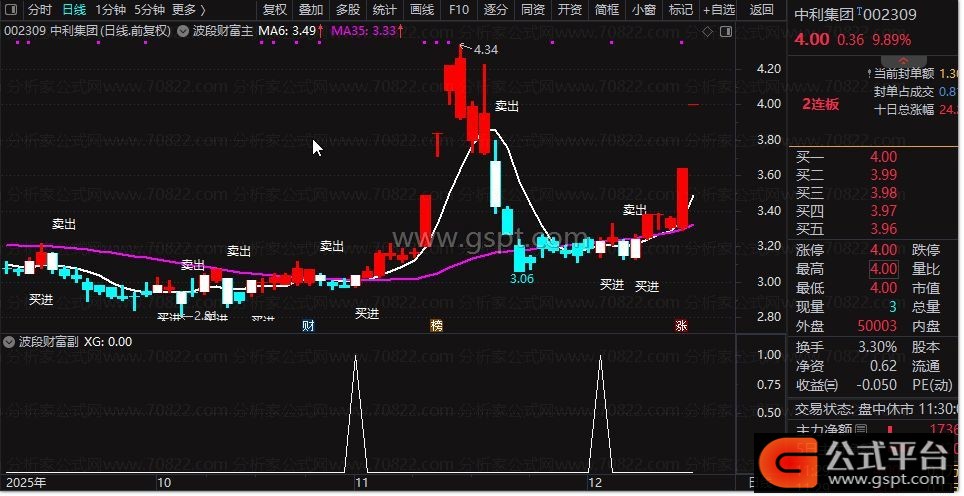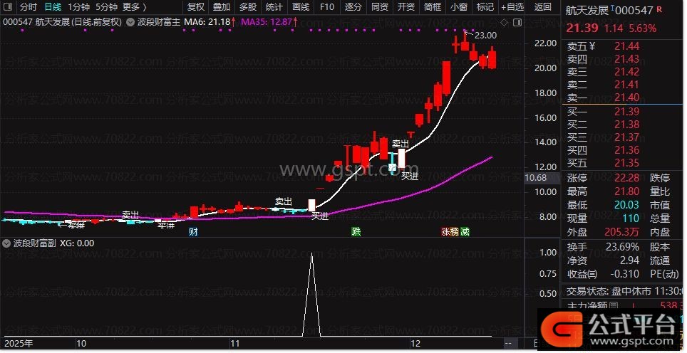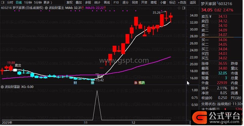 当股价上穿白色线,通常构成短线买入信号。若同时出现“买入”提示,且股价站稳紫色线,或白线金叉紫色线,则形成较为可靠的中线建仓机会。