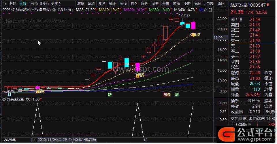今天要分享的指标是“龙头回探”主图指标,配套包含选股指标,且不含未来函数。该指标专为短线交易设计。当出现明确信号时,需快速判断形态是否理想。若形态良好,应进一步分析分时走势图,以确定最佳买入时机。建议在股价短暂回调时果断介入,切勿盲目追涨。次日若股价达到预期高点,应立即卖出锁定利润。