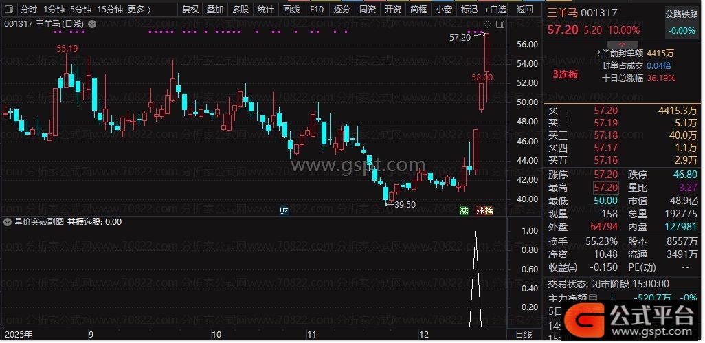 YJZZ1:= gspt1 = gspt2 AND gspt2 = gspt3 AND MA5 > MA10 AND MA10 > MA20 AND gspt1 = 1;