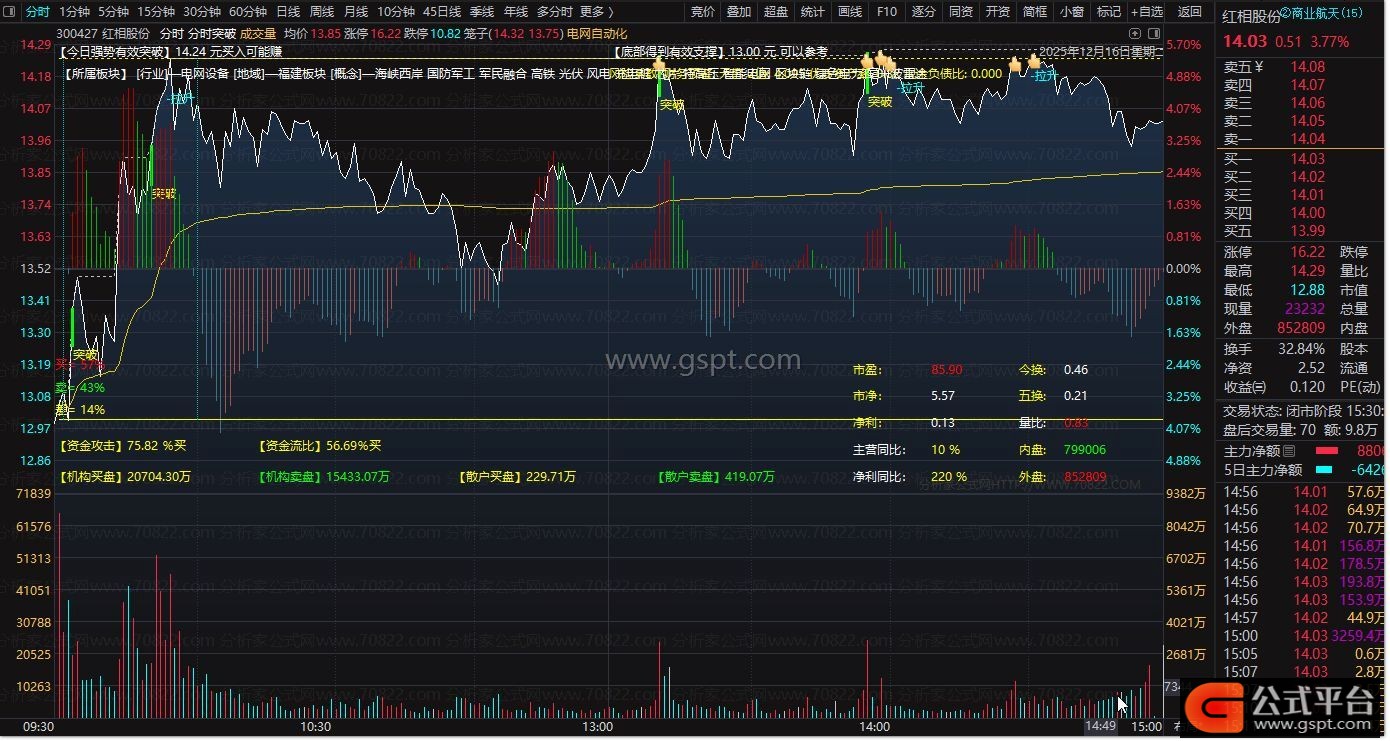 * 共振原则:当资金攻击指标强势、且股价同步形成技术突破时,信号的可靠性更高。