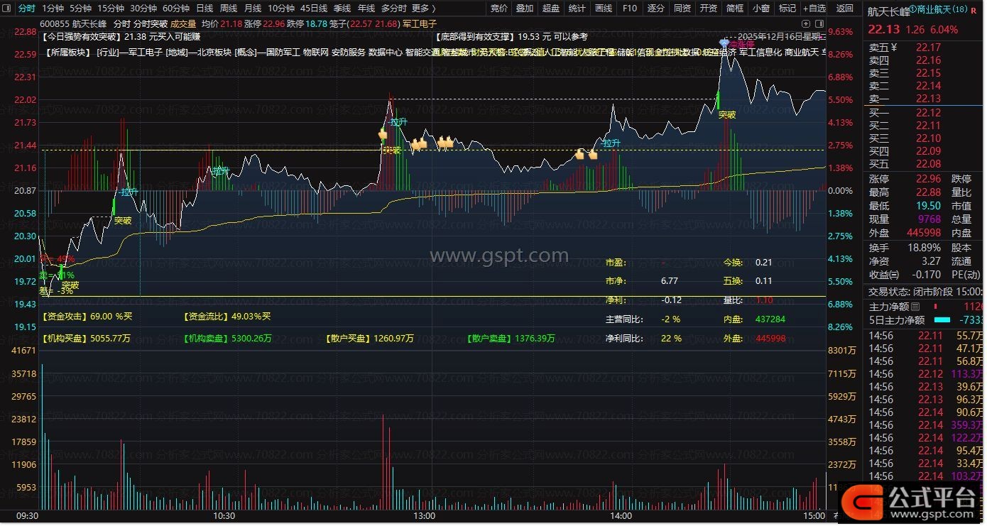 * 突破信号:密切关注股价是否“上穿”白色虚线(上穿分时线),并伴随出现“突破”文字和图标提示,此为重要的日内做多技术信号。