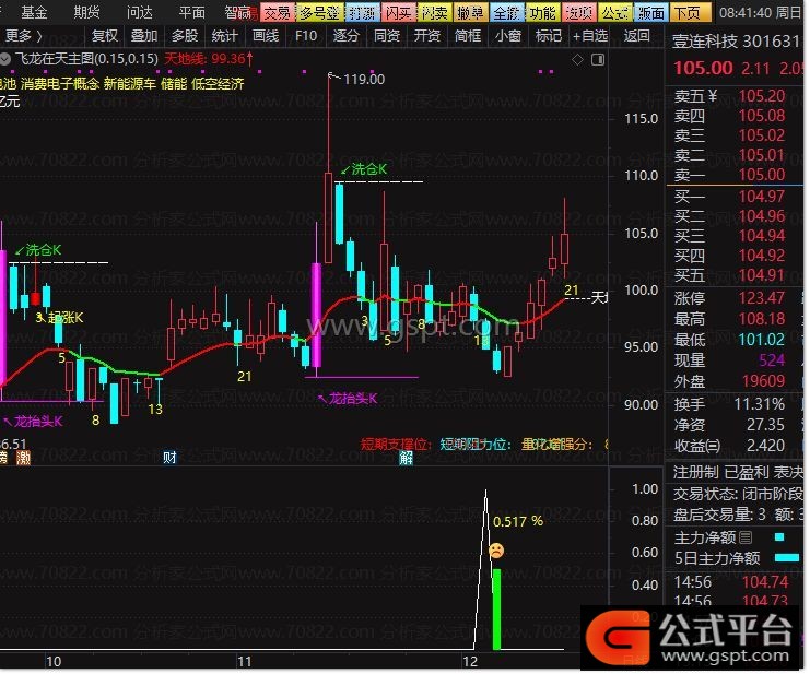 DRAWTEXT(REF(选股,1),0.8,' %'),COLORYELLOW;