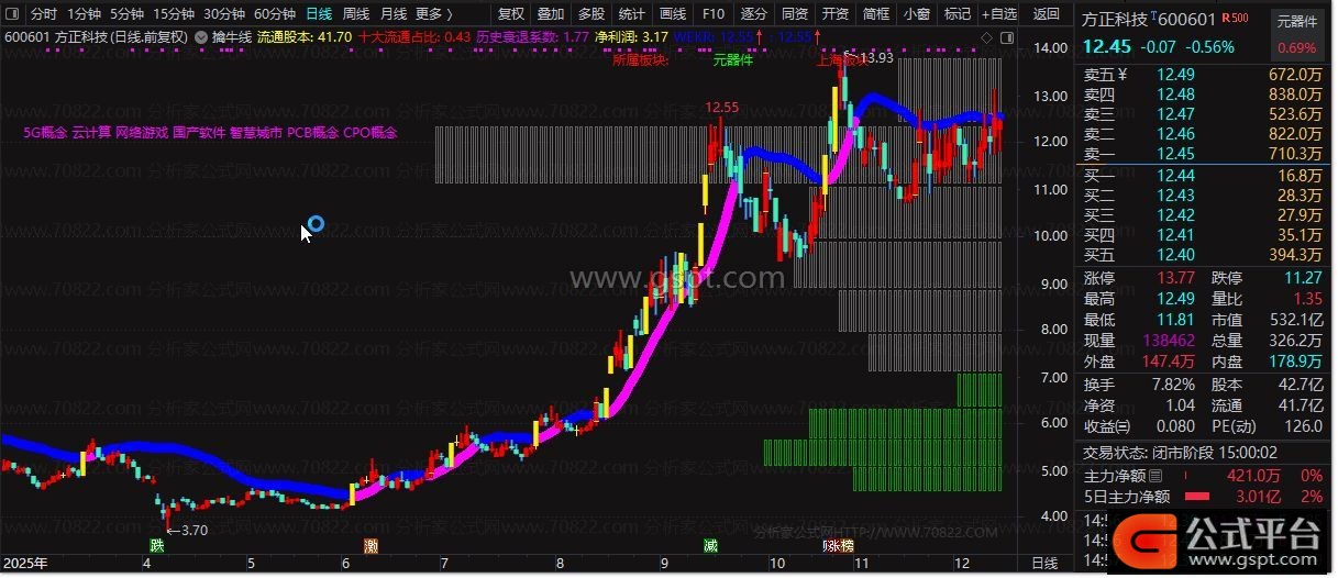 3. 结合底部量能柱密集区(深绿部分)判断支撑,顶部灰柱密集区警惕压力;