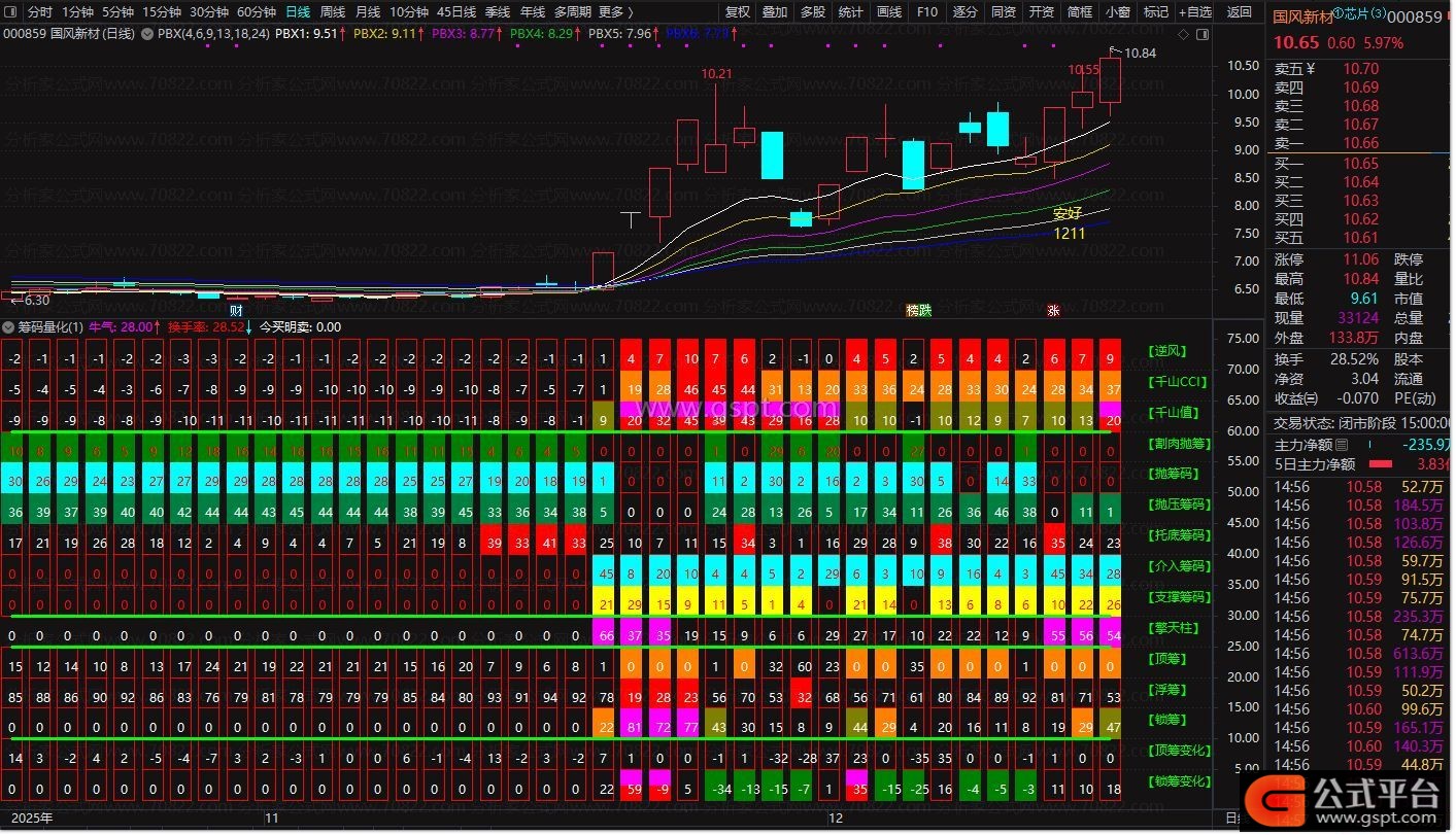 逃:=HHV(今,5)*0.7,COLORCYAN;