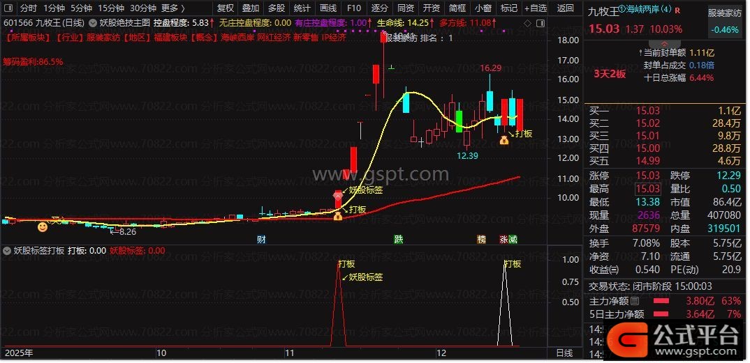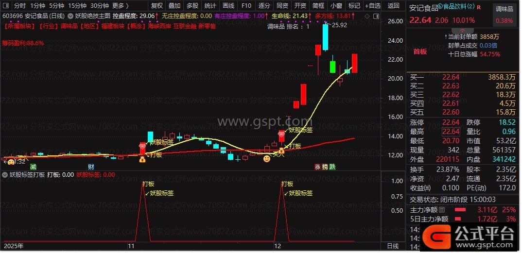 选股公式有2个,分别对应主图文字信号:打板和妖股标签。