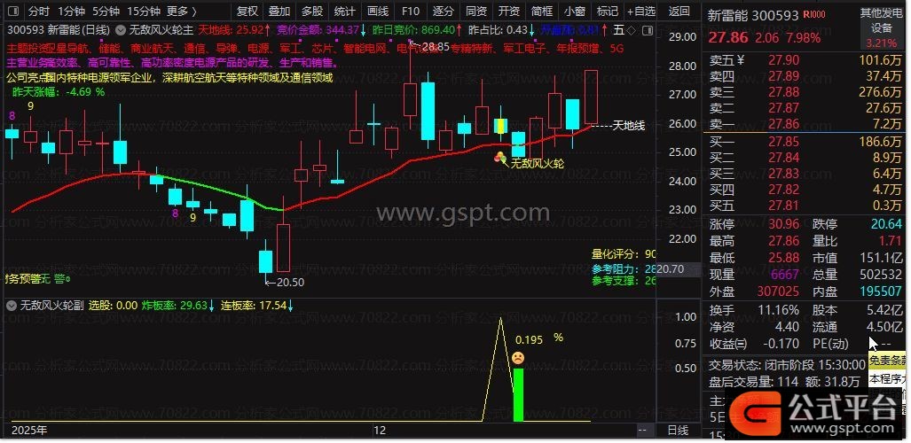 “无敌风火轮”是一款集趋势判断、主力资金识别、买卖信号提示与基本面信息于一体的多功能通达信主图公式。