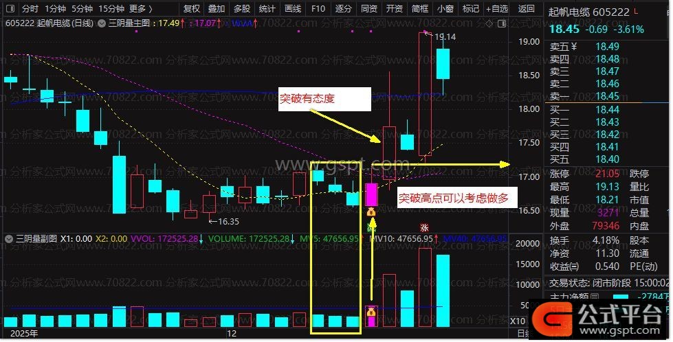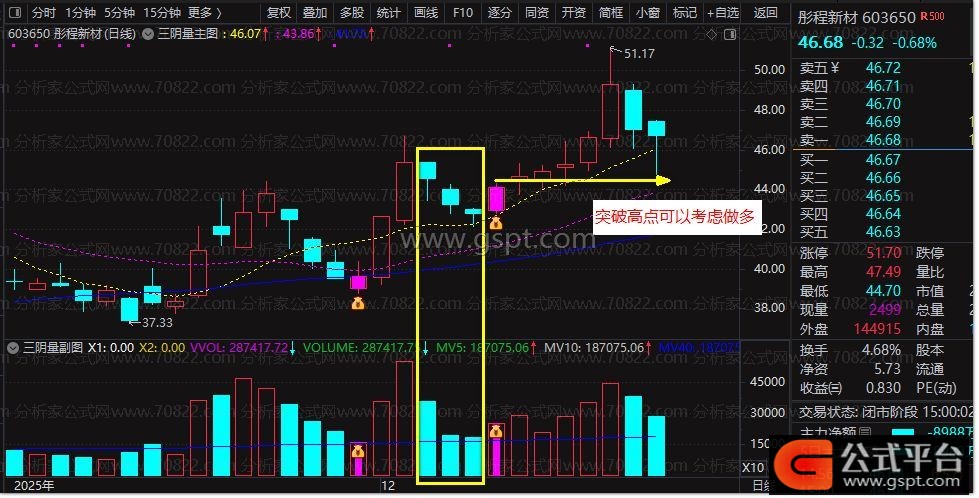 3. 主图辅助以三条均线系统,建议重点关注均线呈多头排列、趋势向上时发出的信号,其参考价值更高。