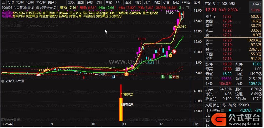 DRAWTEXT(FILTER(gsptSJ,30)=1,25,'即将加速')*gspt88,COLORWHITE,LINETHICK5;