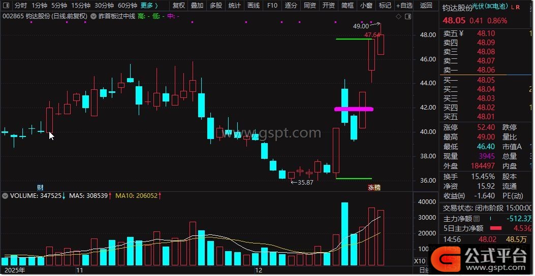 中:IF(CONST(SUM(1,0)>5)*(CURRBARSCOUNT>1)*(CURRBARSCOUNT<5+2),(CONST(REF(LLV(L,5),1))+CONST(REF(HHV(H,5),1)))/2,DRAWNULL),DOTLINE,COLORMAGENTA,LINETHICK8;