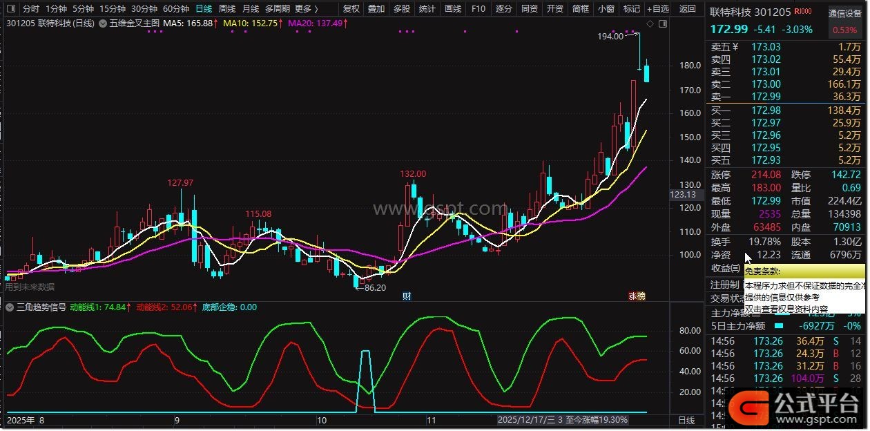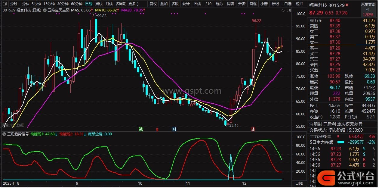 动能线2:SMA(LLV(REF(gspt23,1),5),3,2),COLOR0000FF,LINETHICK2;