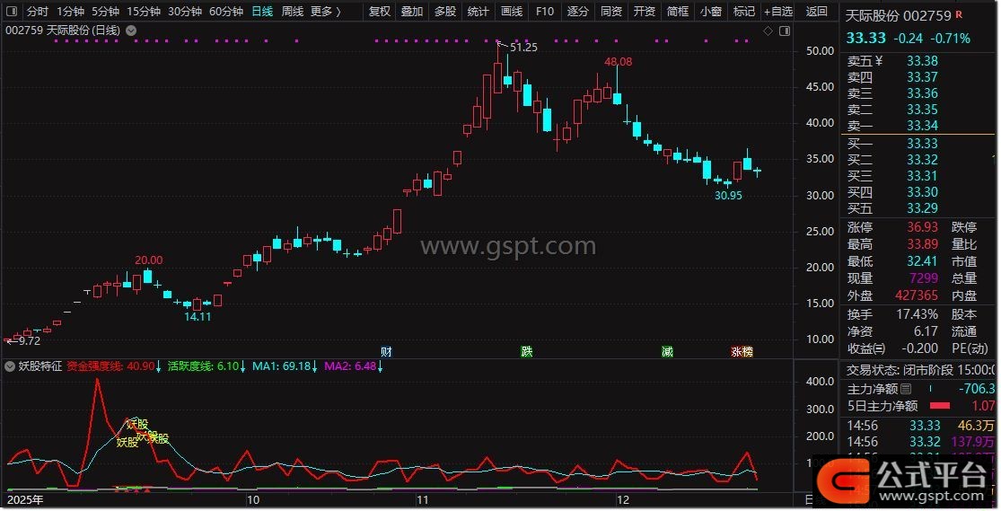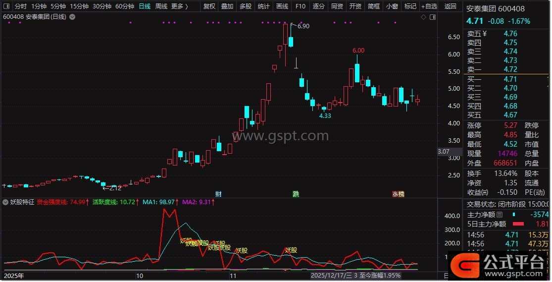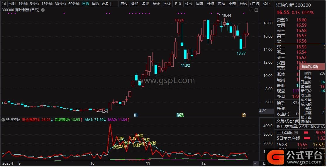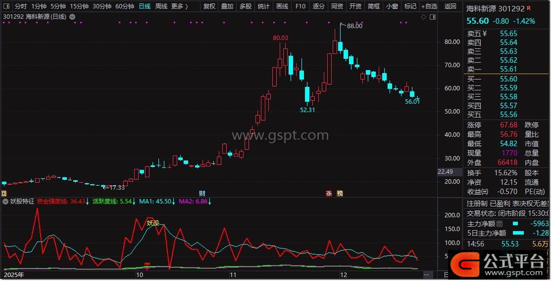 2. 副图重点关注:红色资金强度线>150、绿色活跃度线>8,且MA1(资金强度5日均线)、MA2(活跃度5日均线)呈向上趋势时,信号有效性更高;