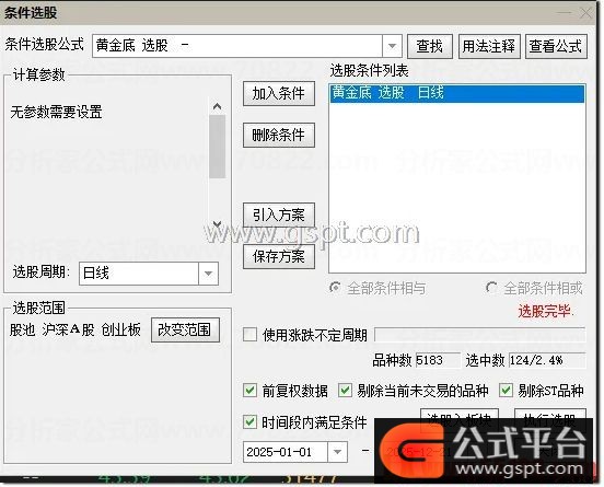 本文仅提供 黄金底副图和黄金底选股,并没有其他的副图和主图