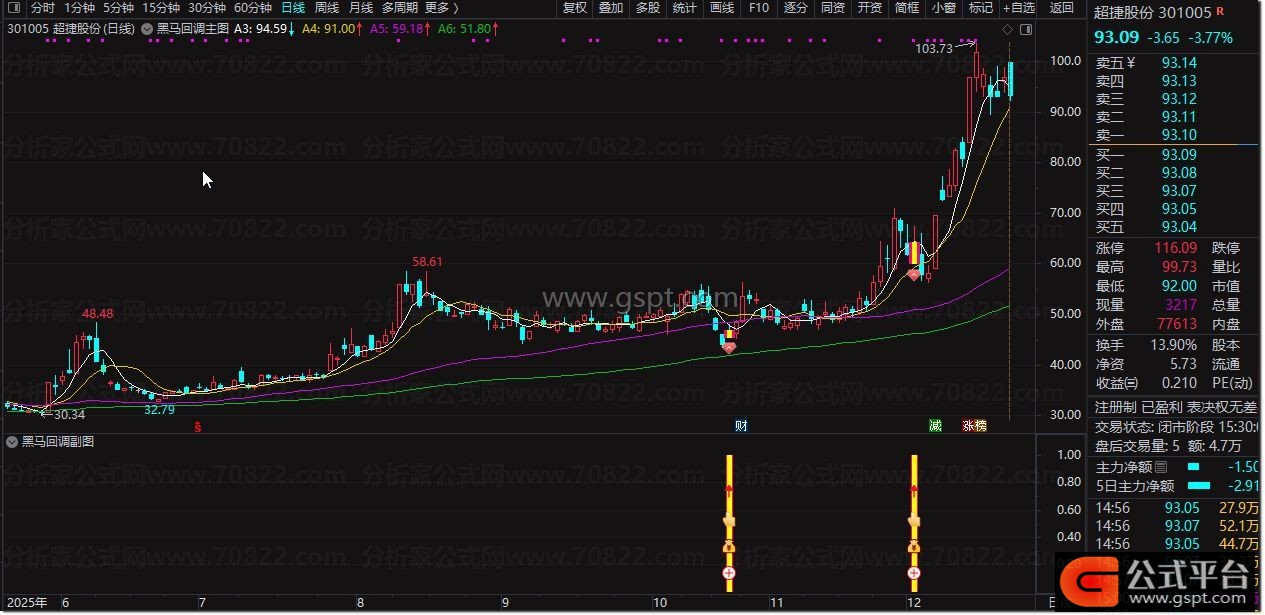 通达信『黑马回调』早盘竞价强势股低吸信号捕捉 高成功率技巧