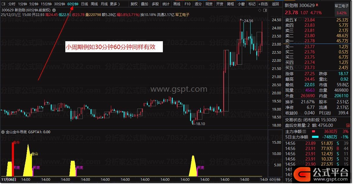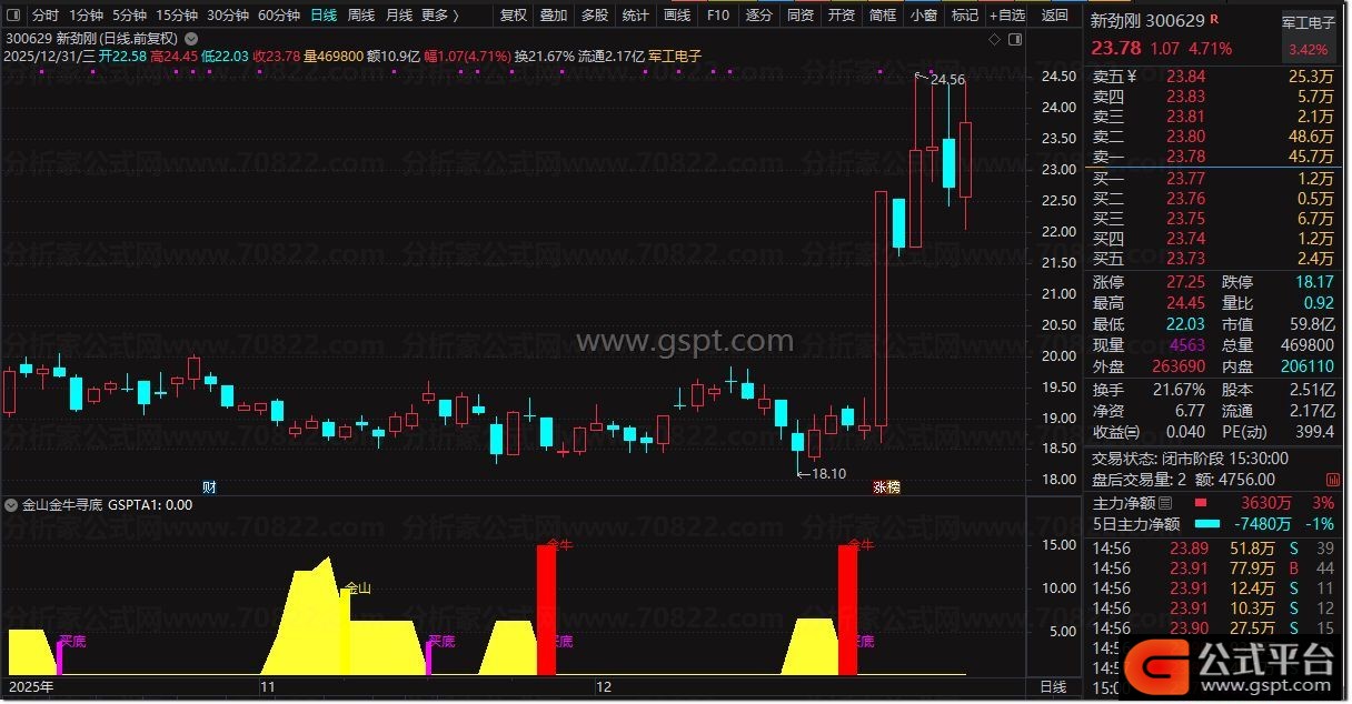 DRAWTEXT(CROSS(10,gsptA1) AND gsptA1< REF(gsptA1,1),10,'金山'),COLORYELLOW;