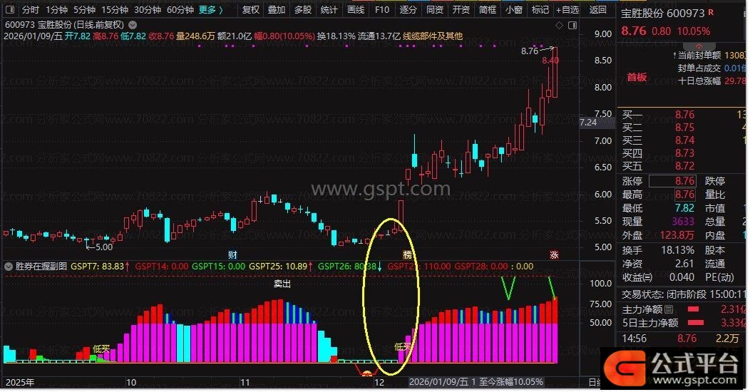 2. 副图出现黄色「低买」文字标注,属于低位企稳买点,此时指标数值低于25,个股处于超跌区间,适合分批建仓;