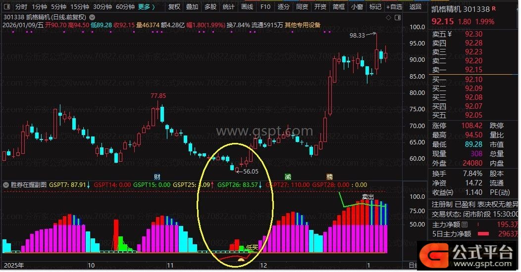 1. 副图出现醒目的红色大字「胜券在握」+红色箭头图标(数值80位置),是**最强共振买入信号**,满足多维度低位企稳+多头启动条件,成功率极高;