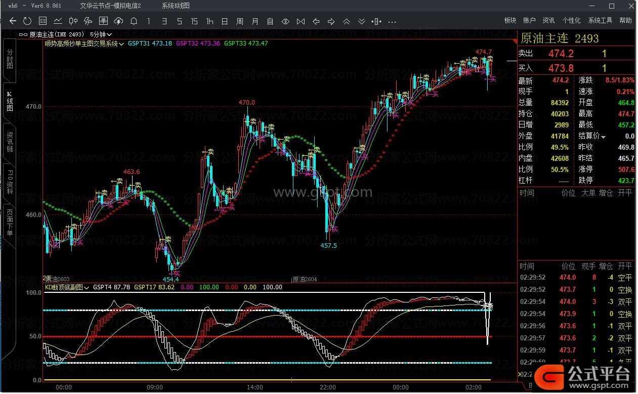 DRAWTEXT(gspt30,REF(CLOSE,1)+0.1,'←卖'),COLORYELLOW,VALIGN2;